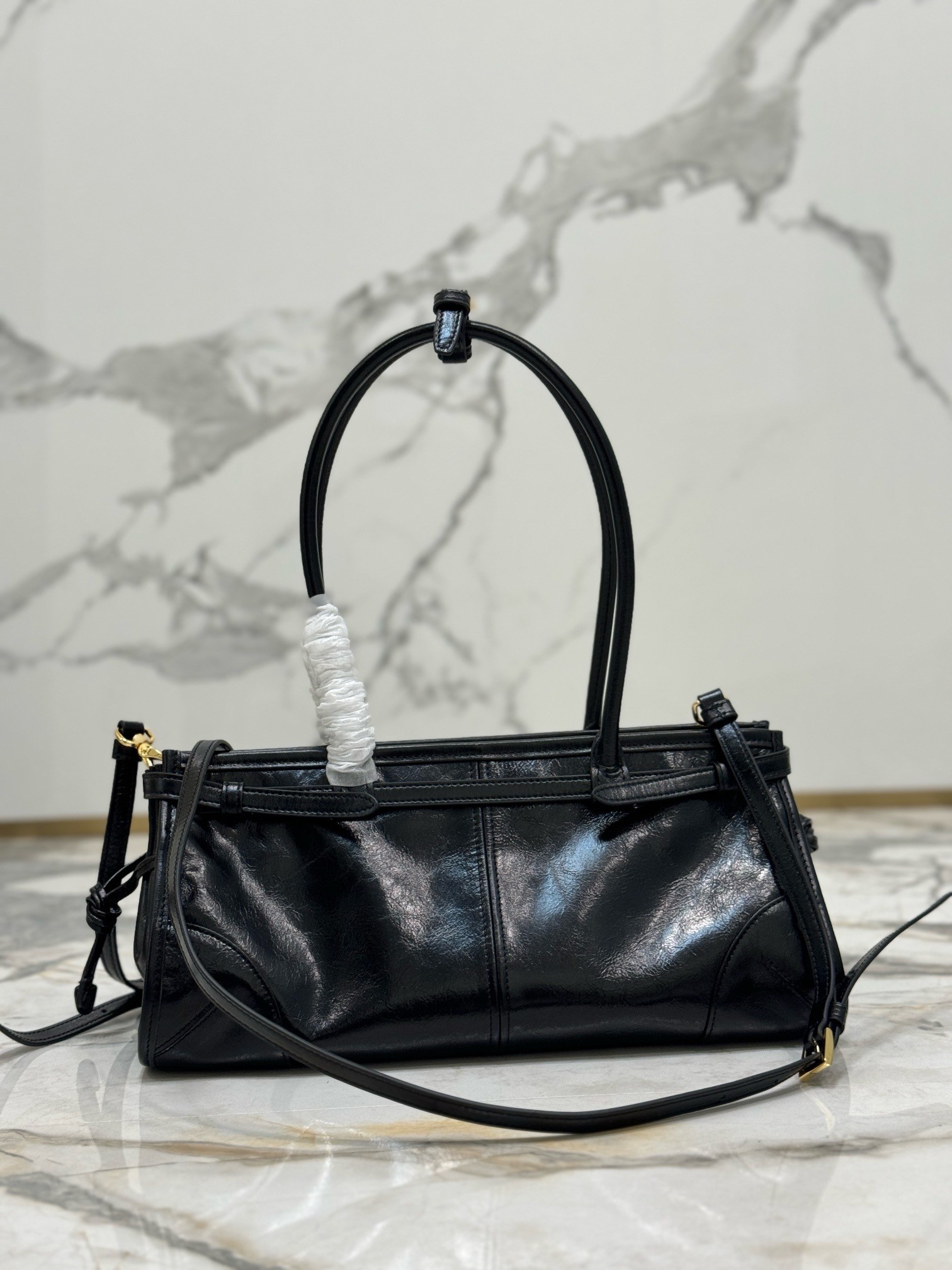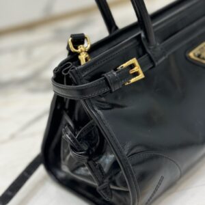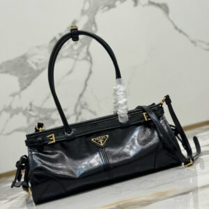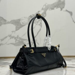 – Nappa and nylon interior with center zipper compartment and zipper patch pocket