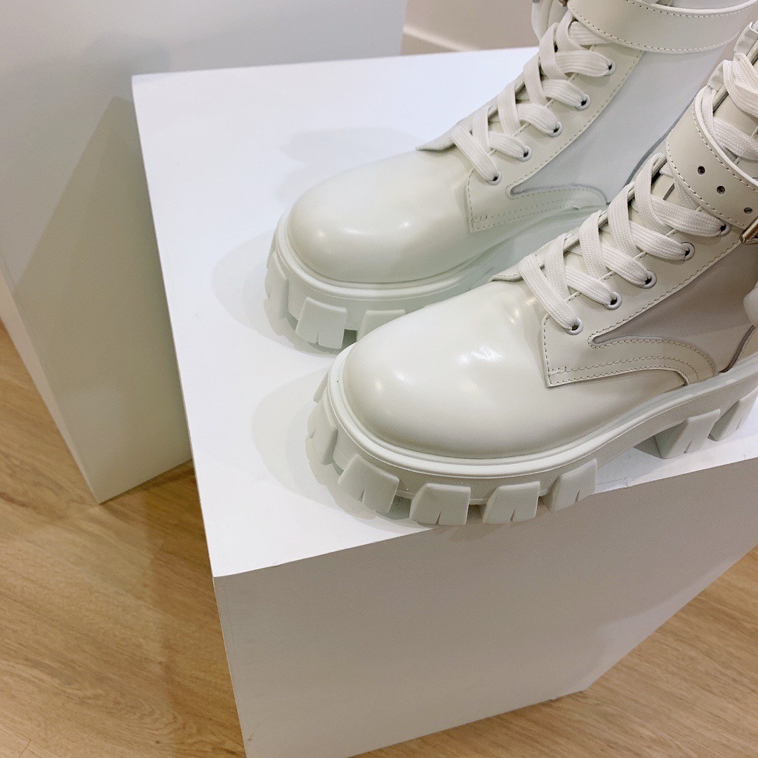 Prada Monolith Boots in White Leather and Nylon Fabric