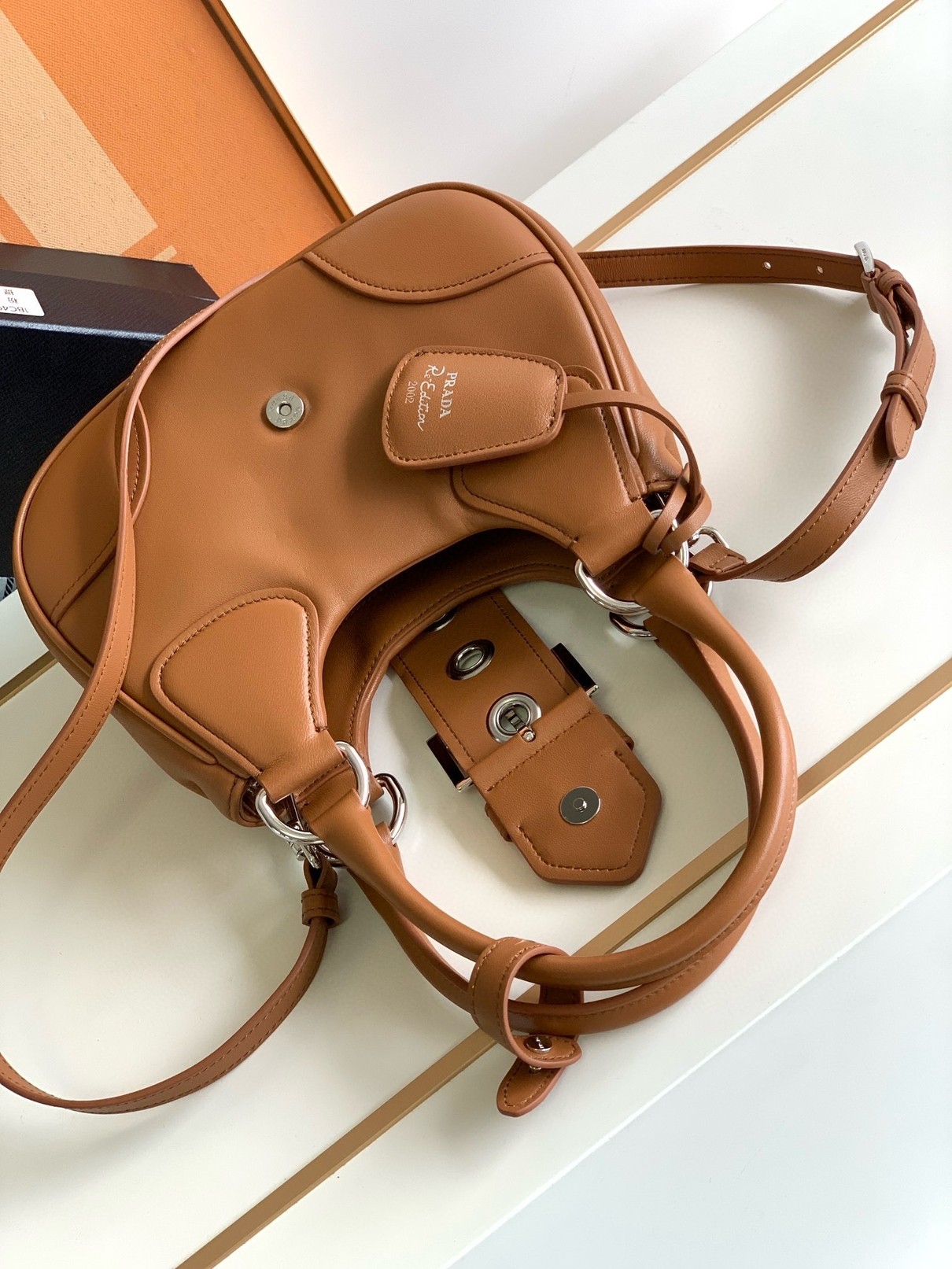 Prada Moon Bag in Caramel Padded Nappa Leather