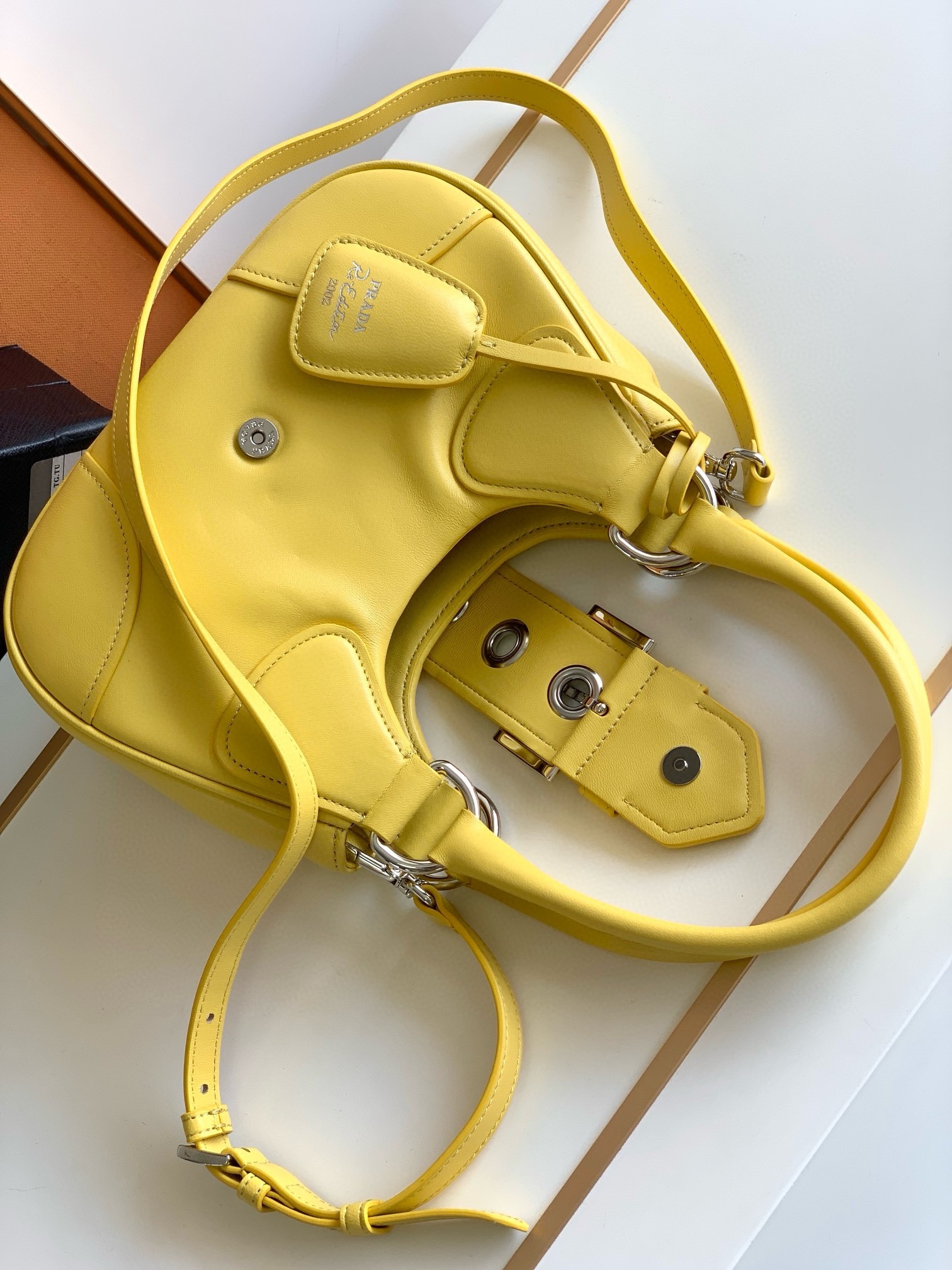 Prada Moon Bag in Yellow Padded Nappa Leather