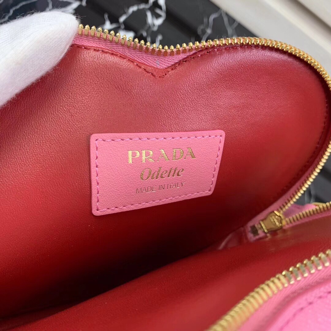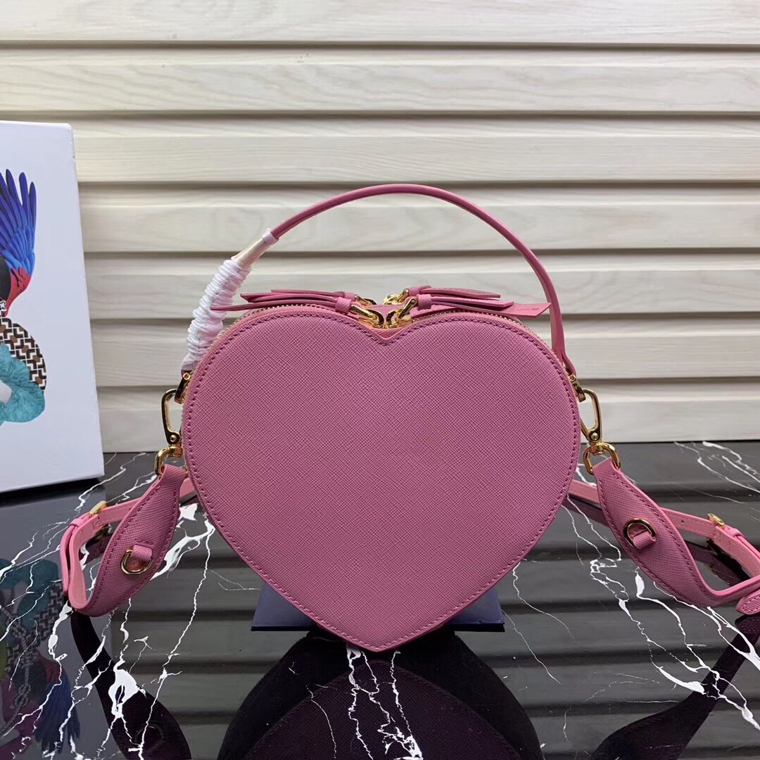 Prada Odette Heart Bag In Pink Saffiano Leather