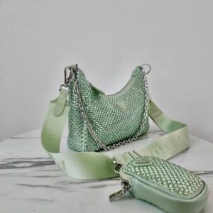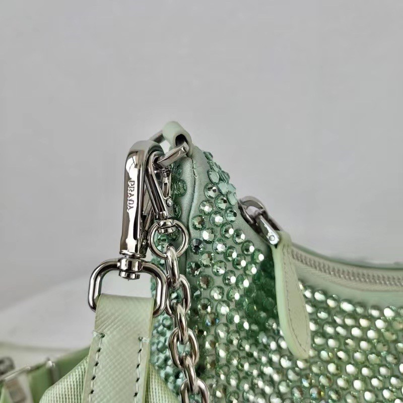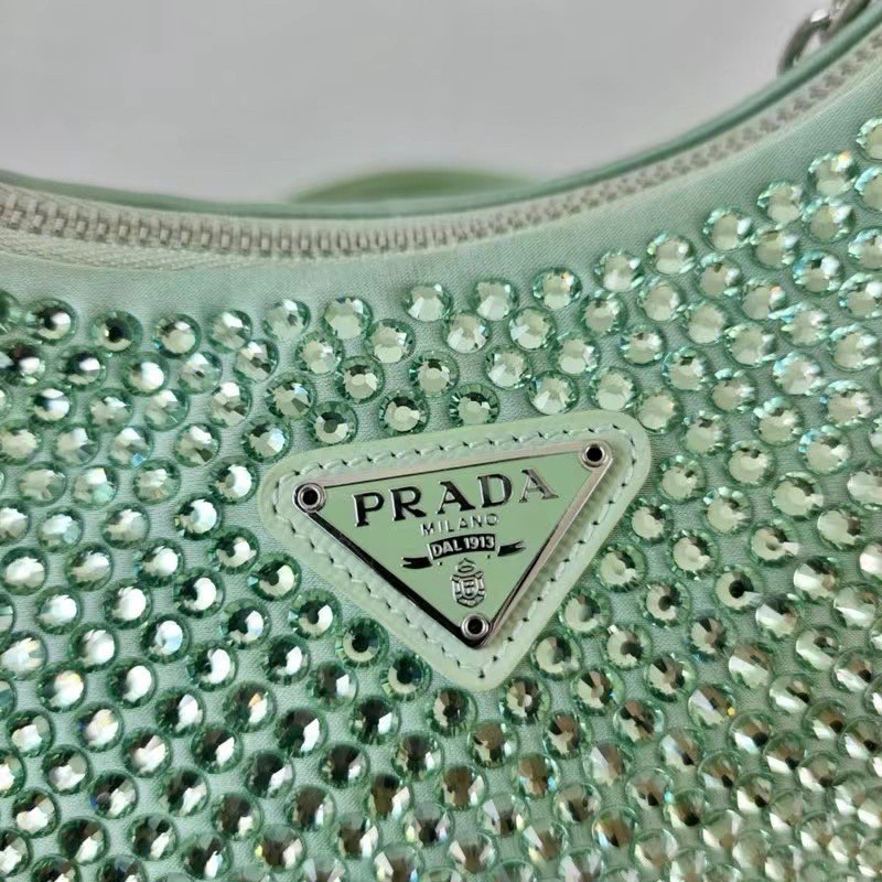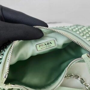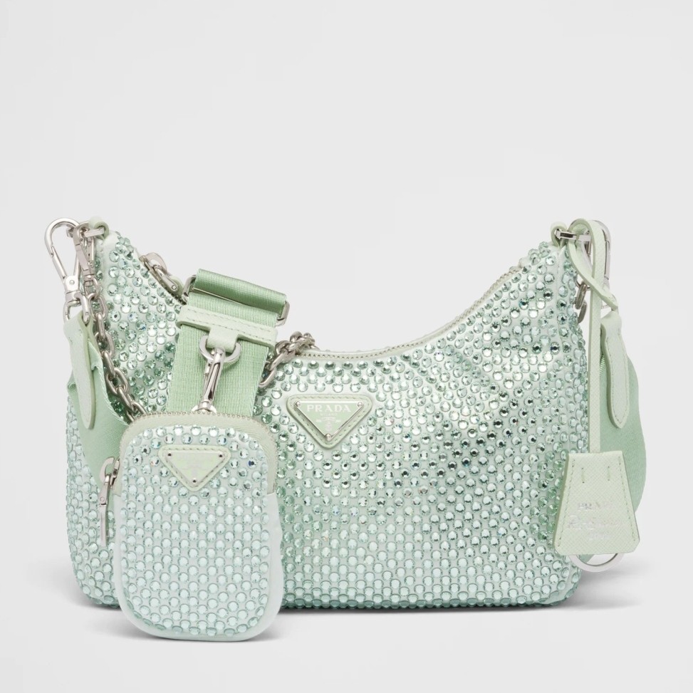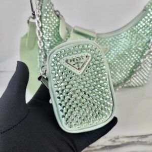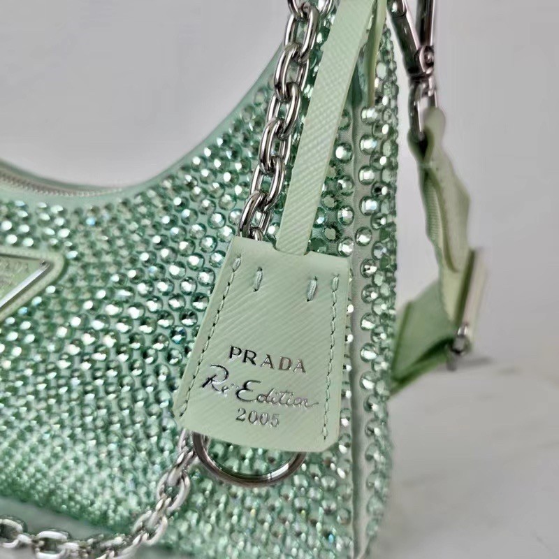 Prada Re-Edition 2005 Bag In Aqua Satin with Crystals