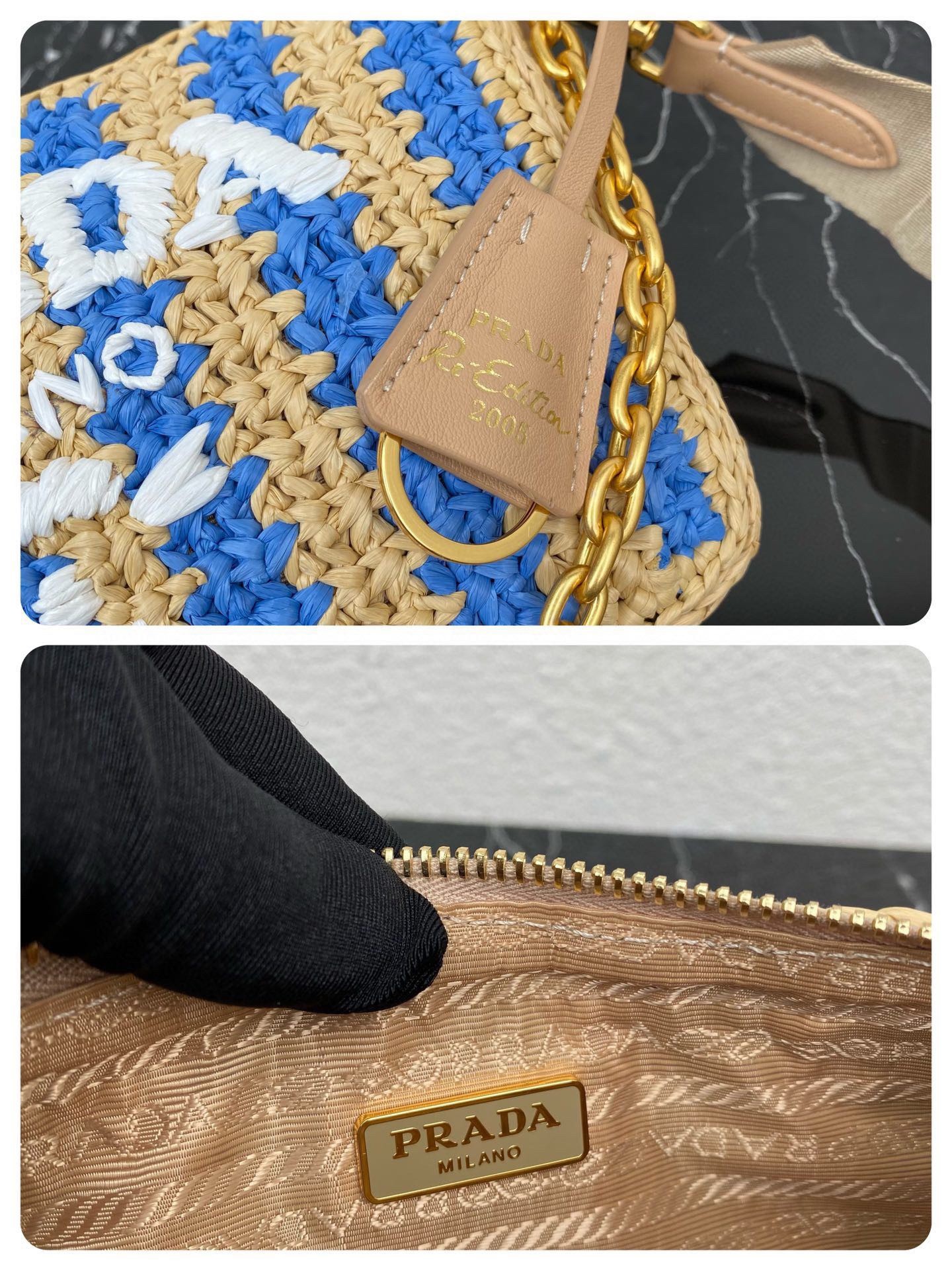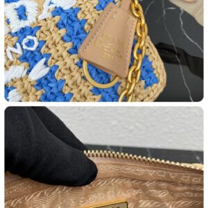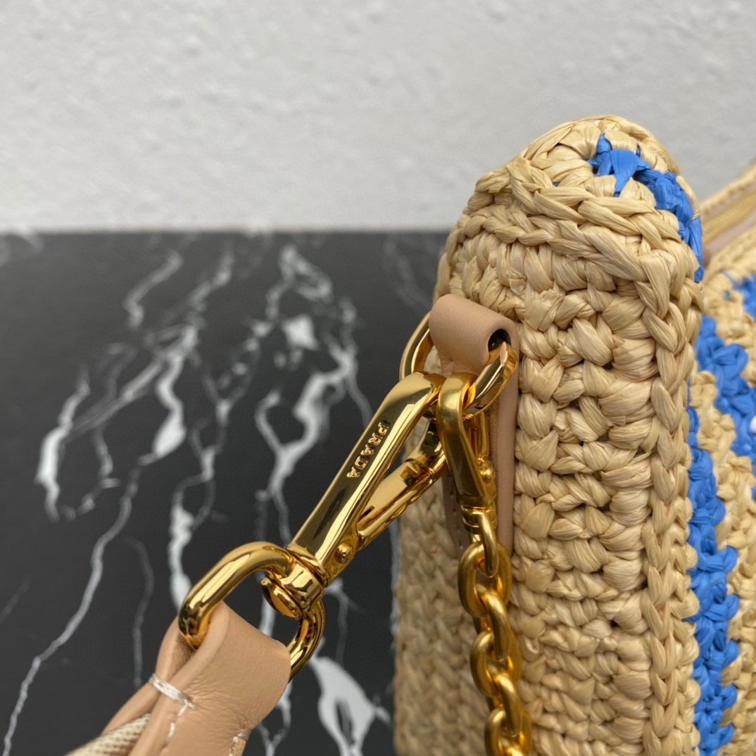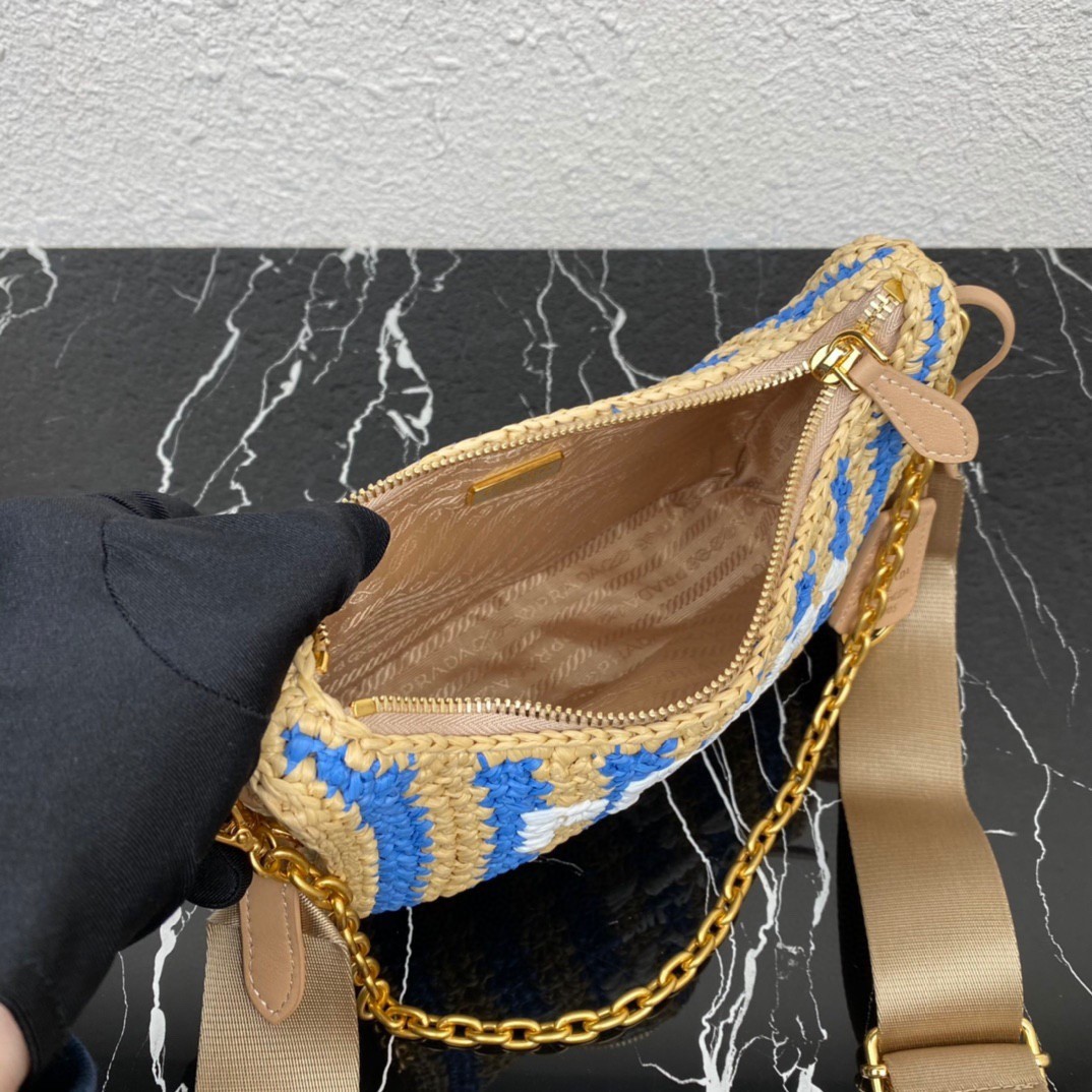 Prada Re-Edition 2005 Bag In Beige and Blue Stripe Raffia