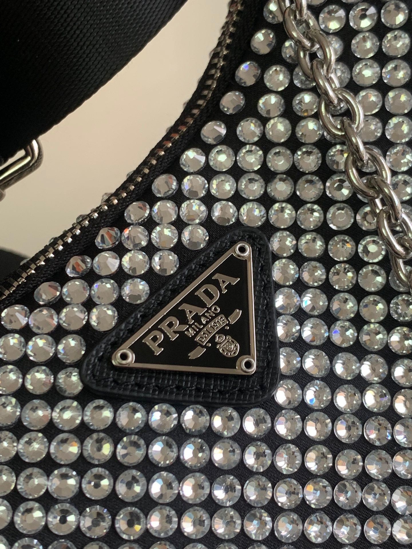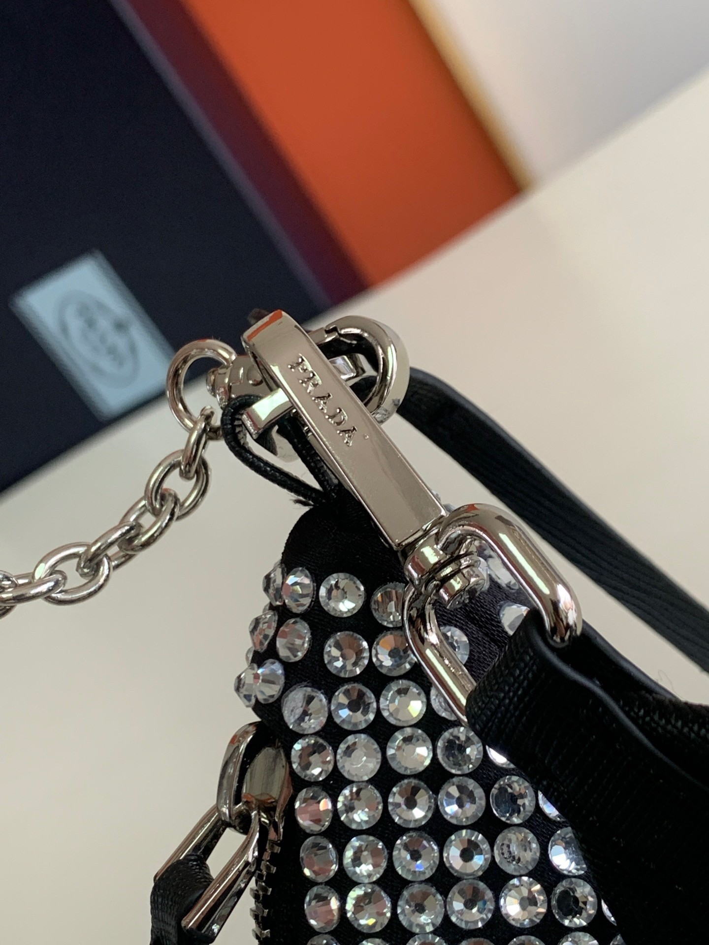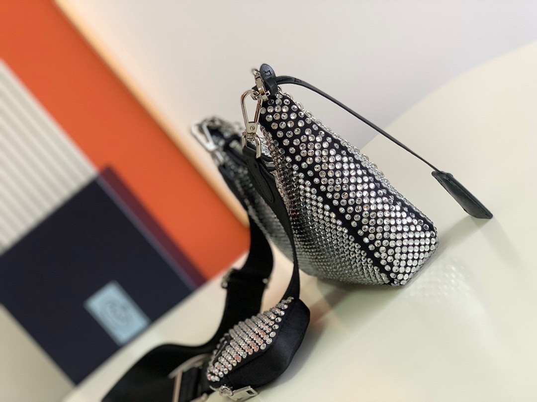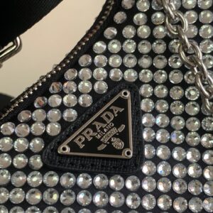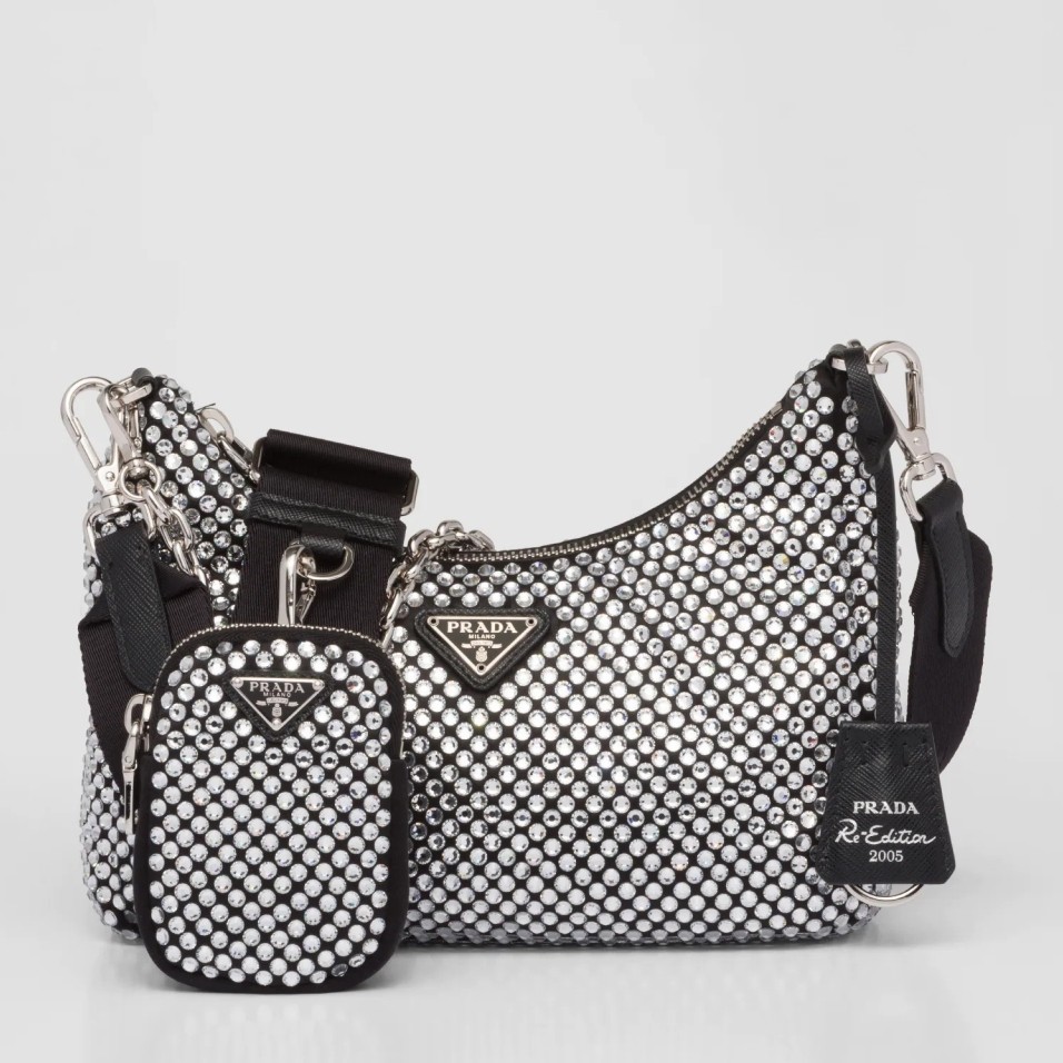 Prada Re-Edition 2005 Bag In Black Satin with Crystals