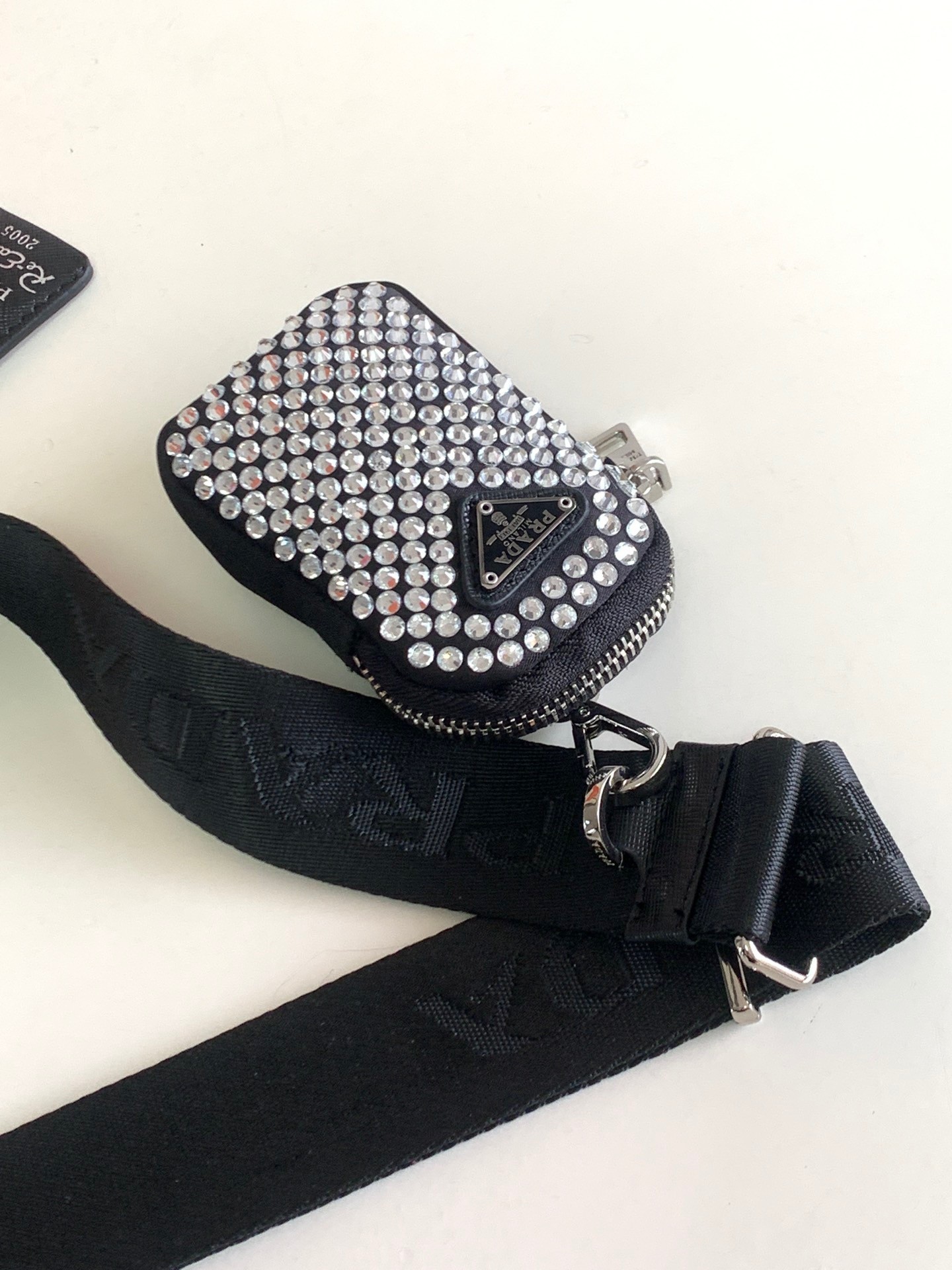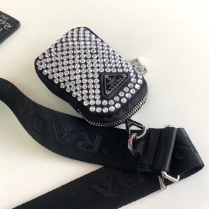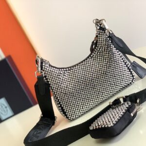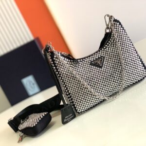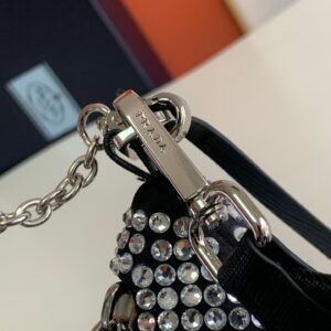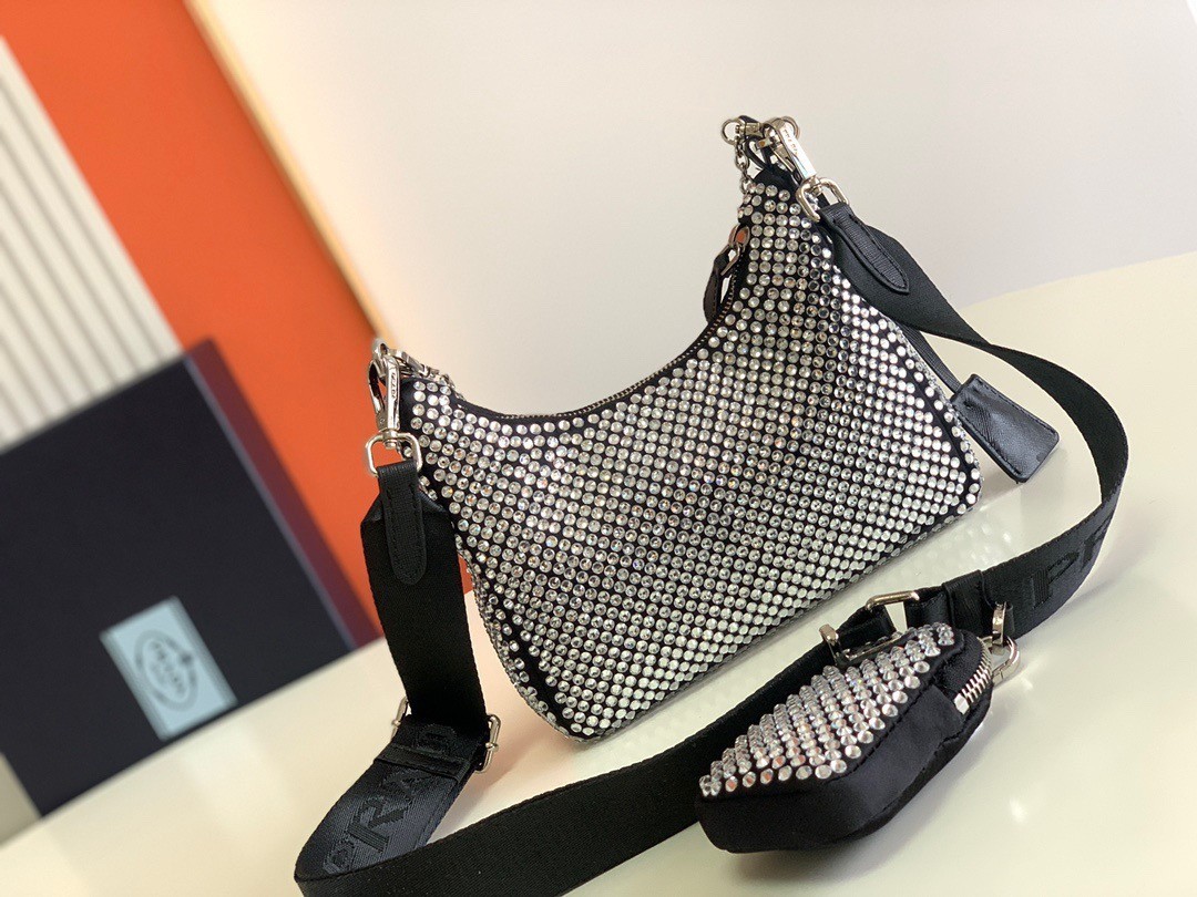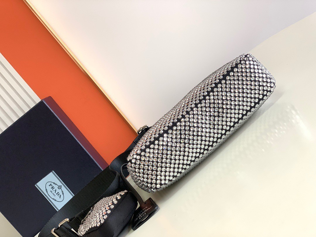 Prada Re-Edition 2005 Bag In Black Satin with Crystals