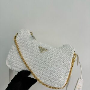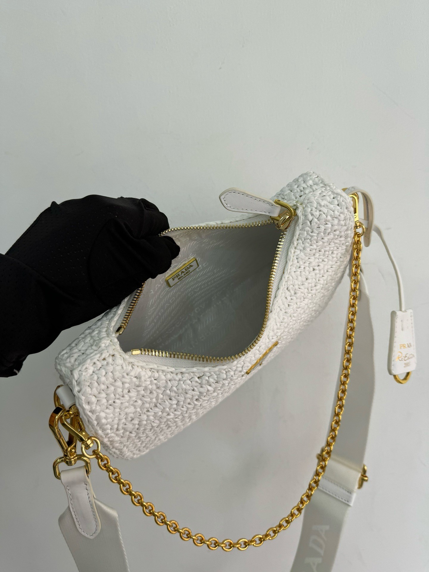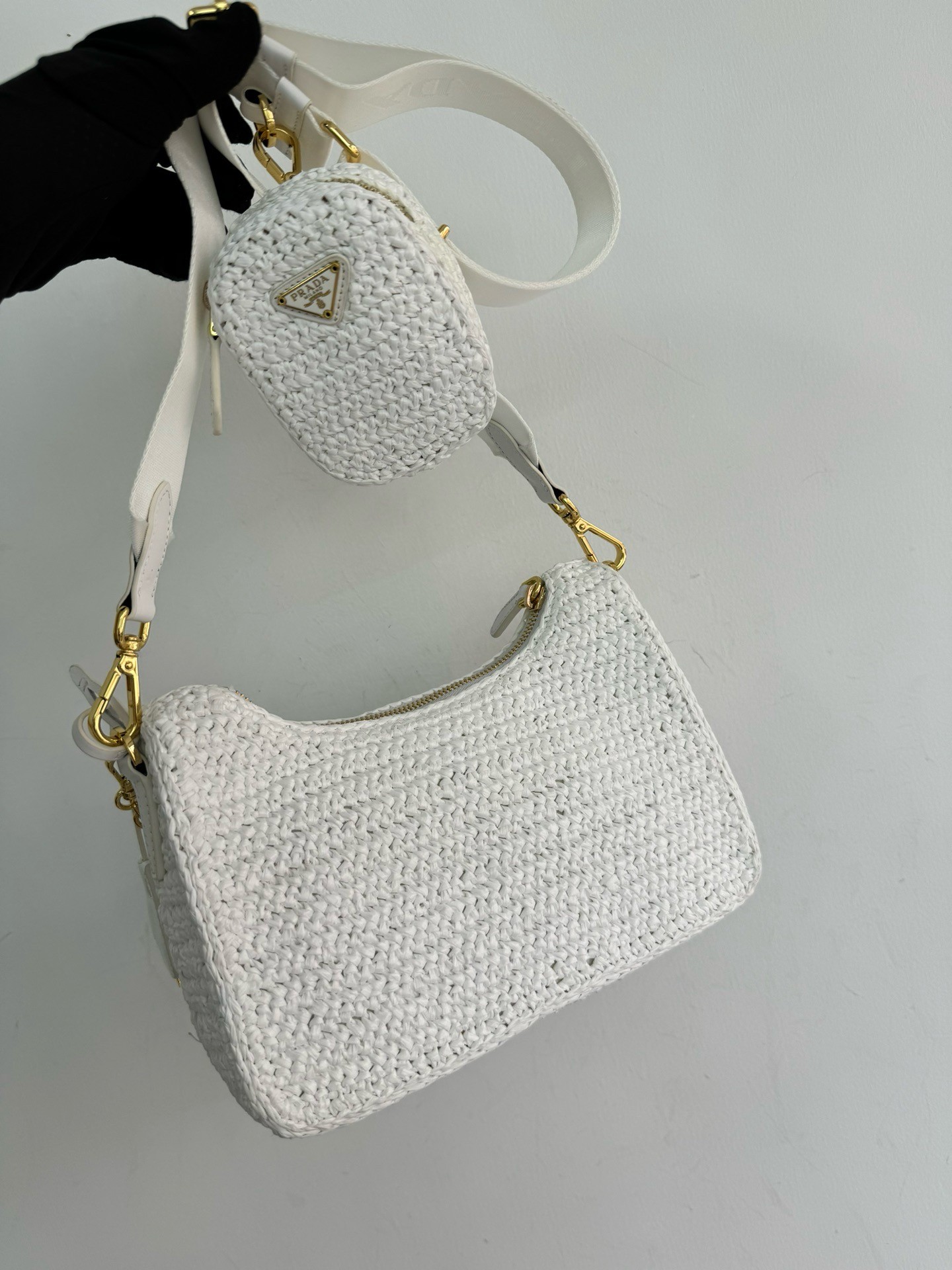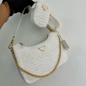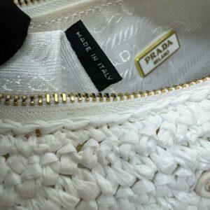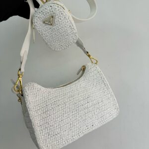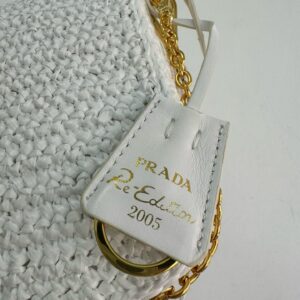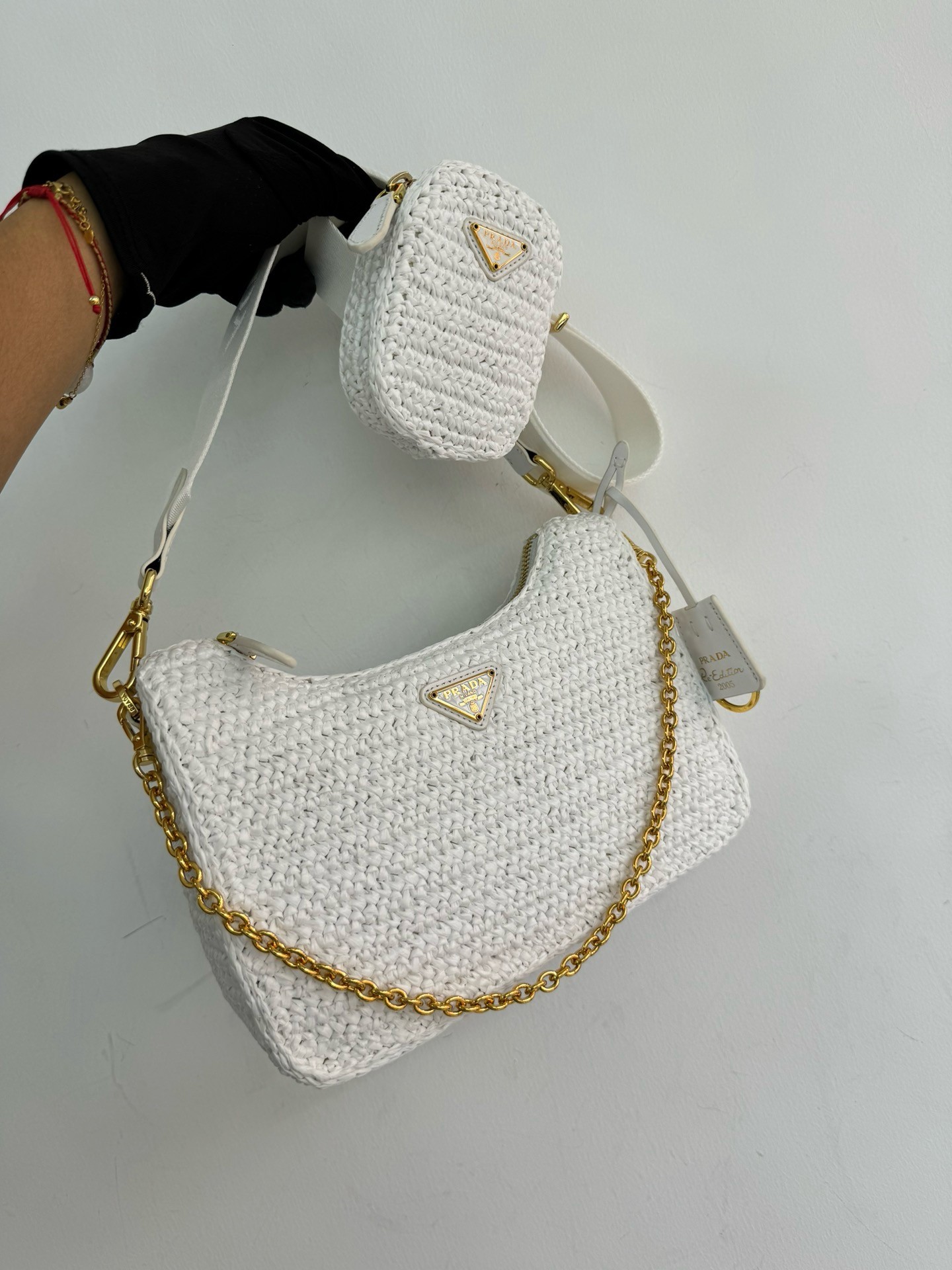 – Removable raffia zipper pouch and Re-Edition keychain