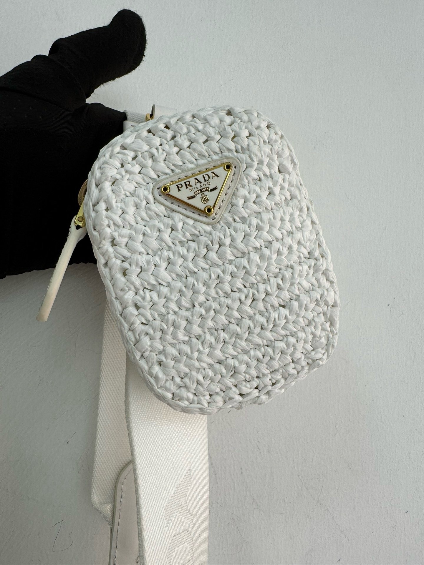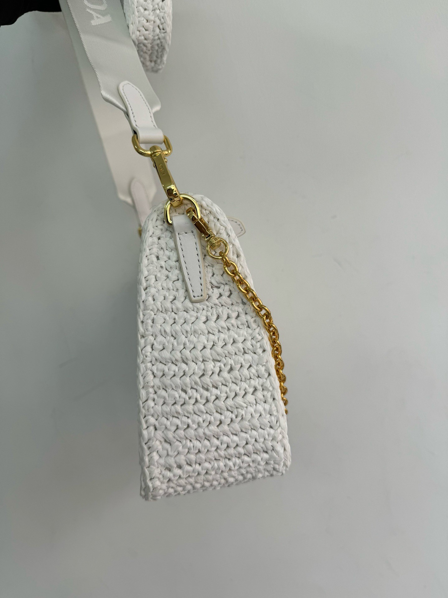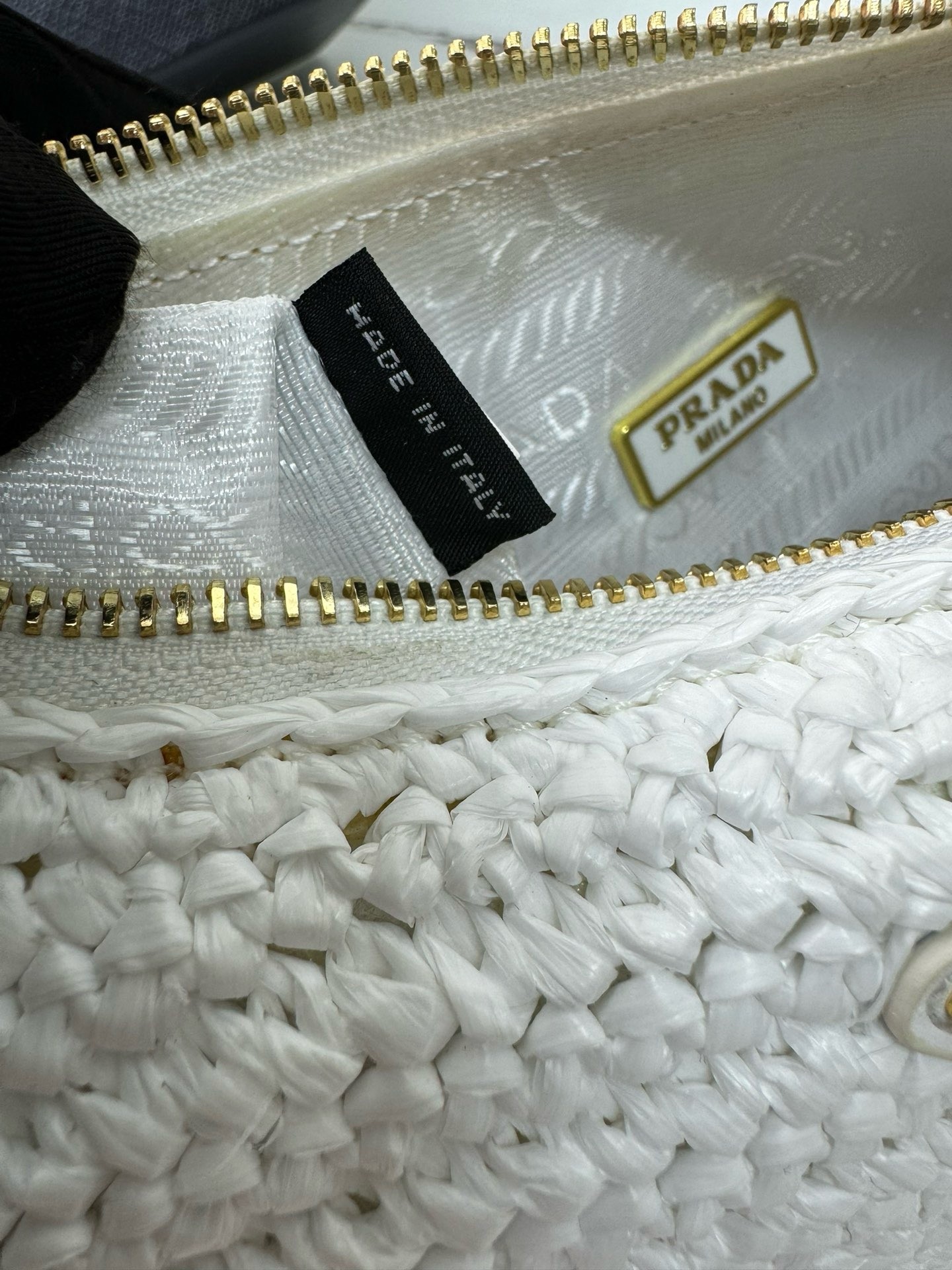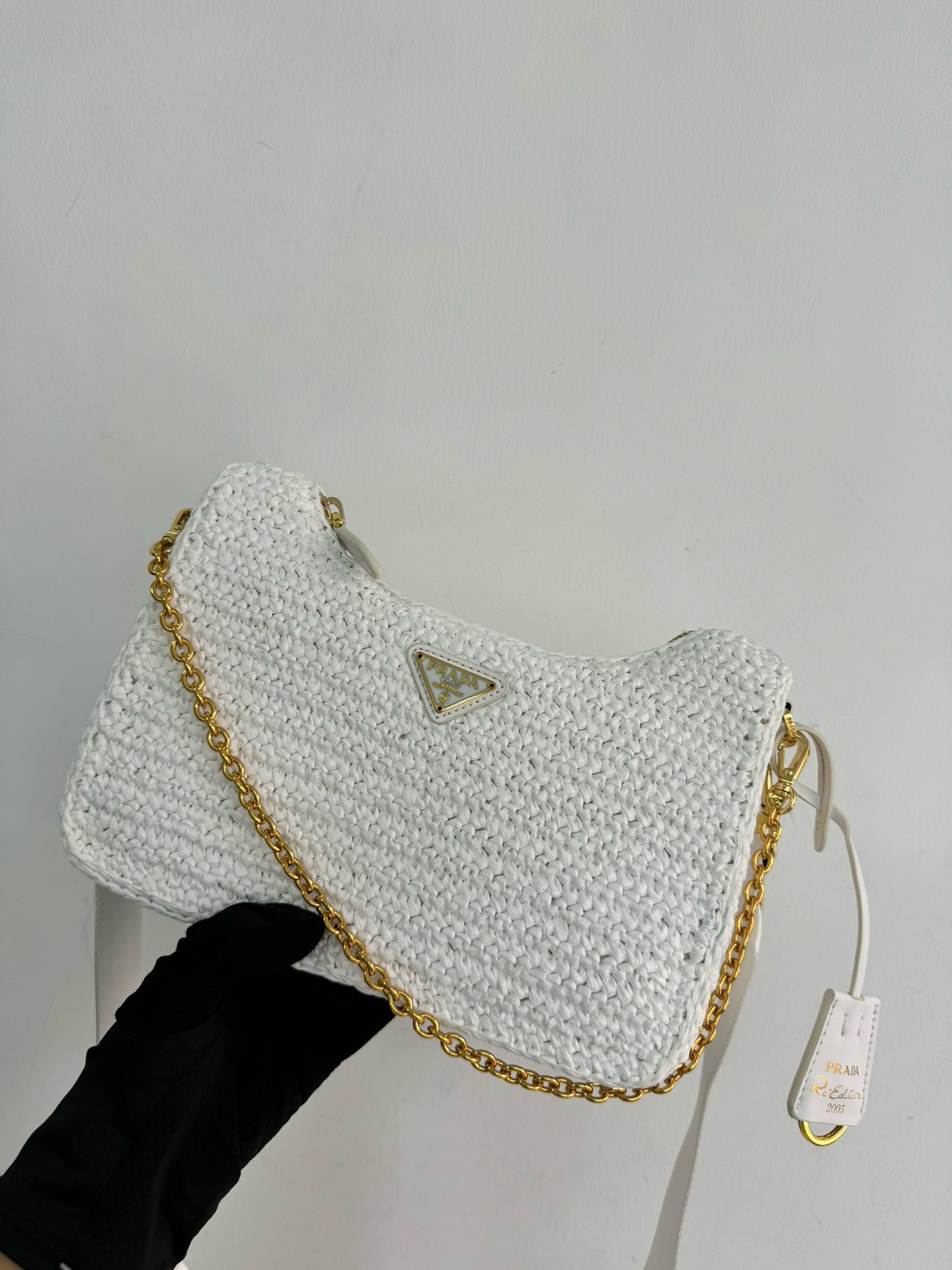 – Removable raffia zipper pouch and Re-Edition keychain