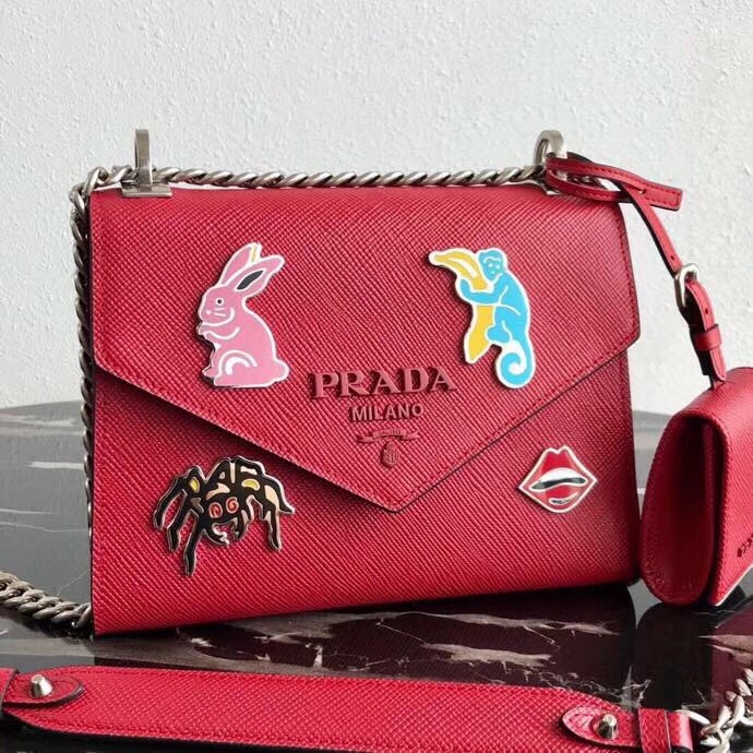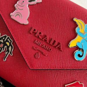 Prada Red Monochrome Flap Bag With Metal Appliques