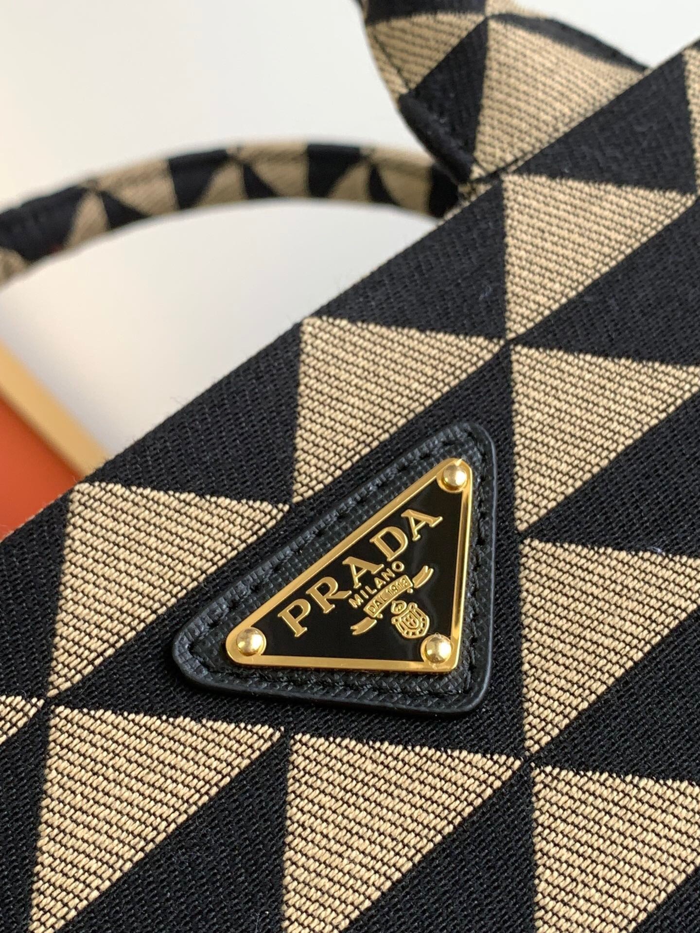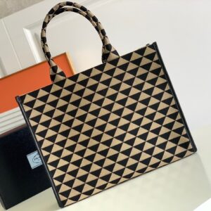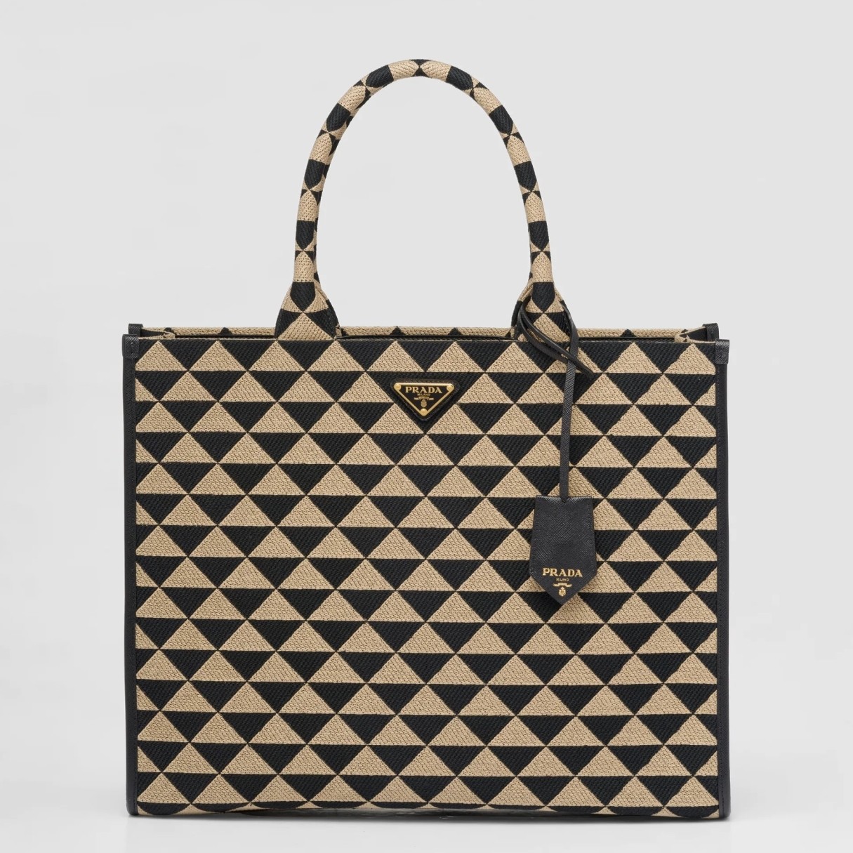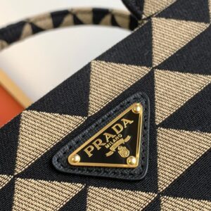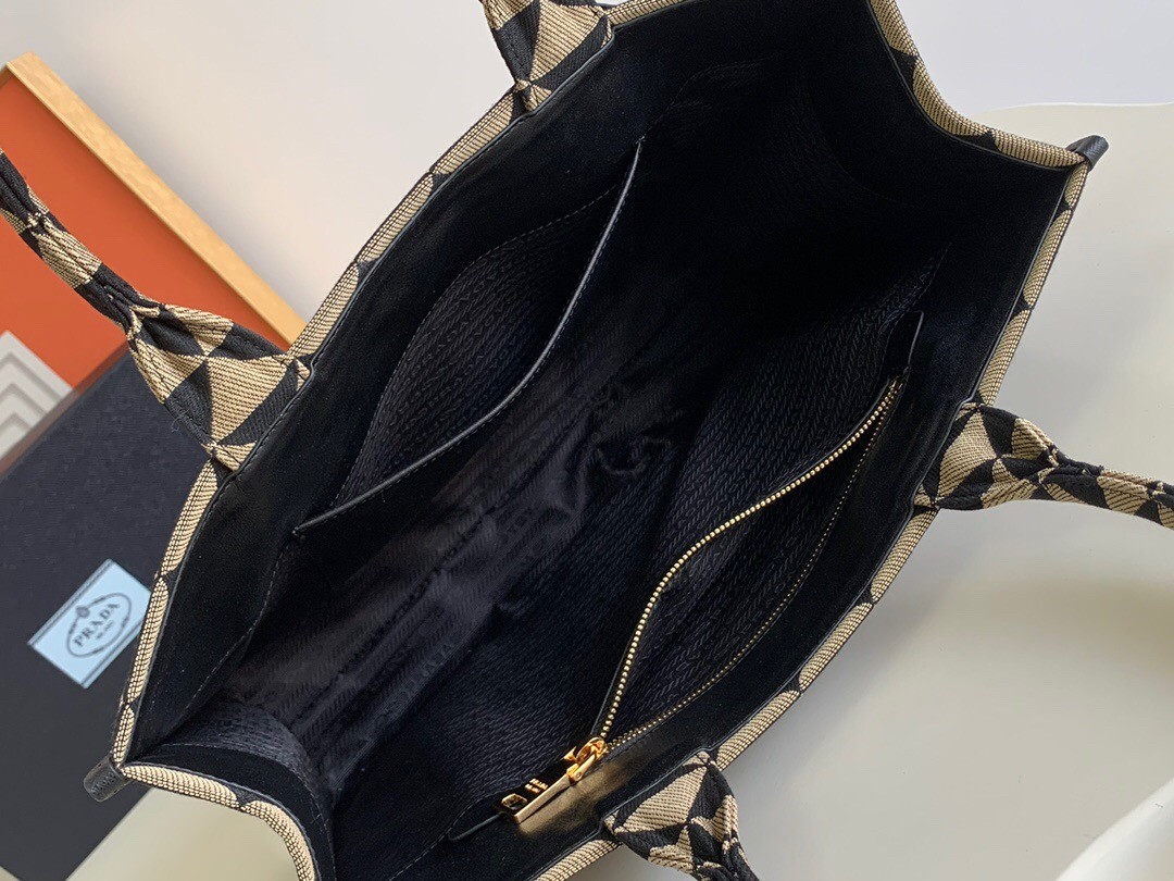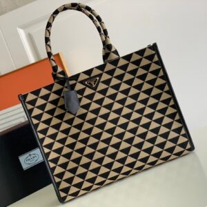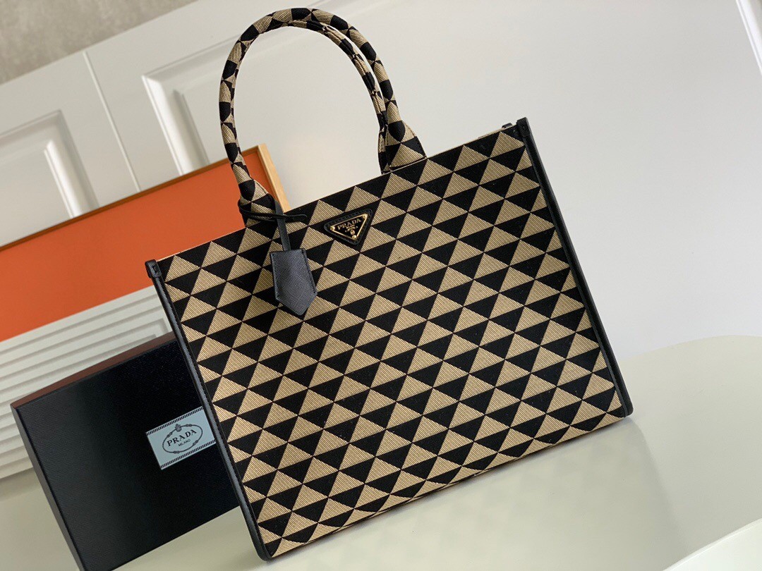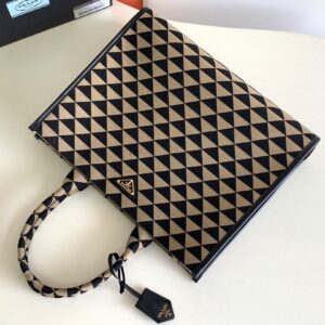 Prada Symbole Large Bag In Black/Beige Jjacquard Fabric