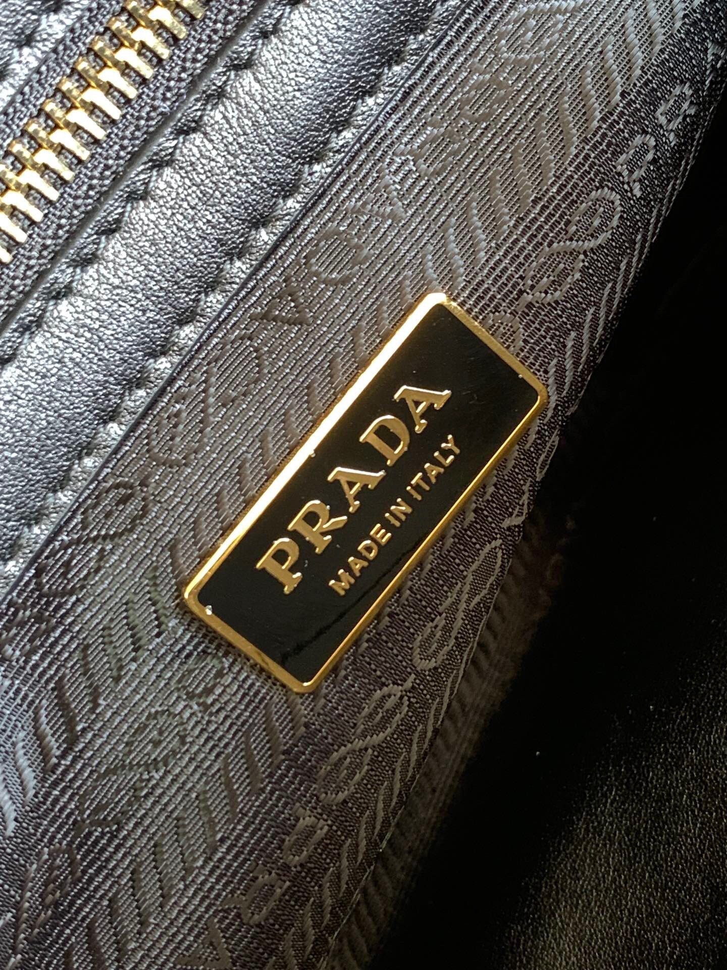 – Prada logo-print nylon lining with two pockets, one with zipper