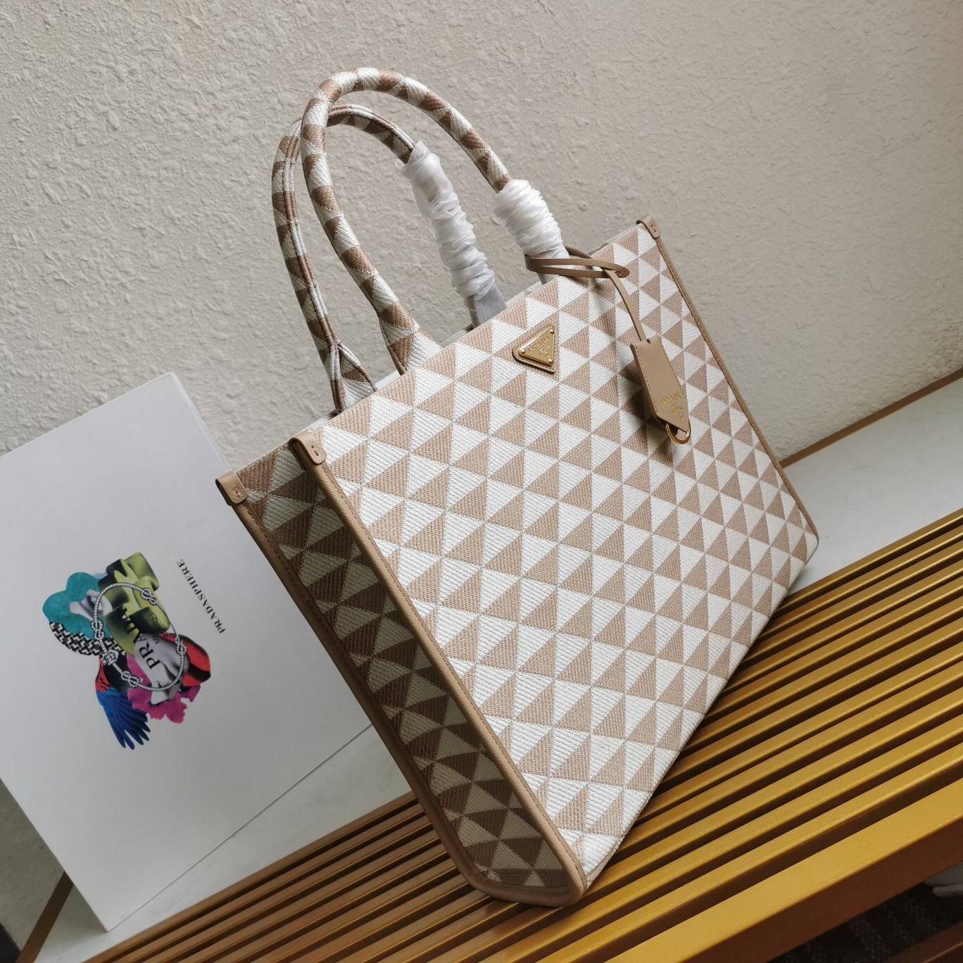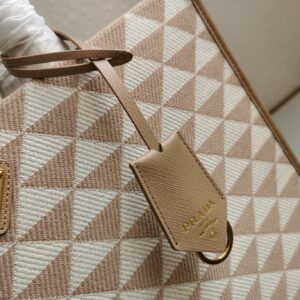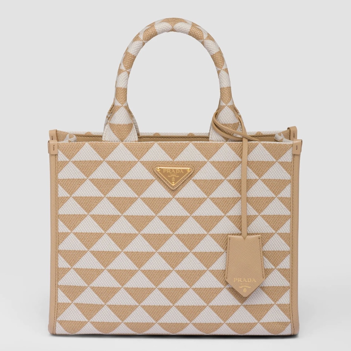 Prada Symbole Small Bag in Beige and White Jacquard Fabric