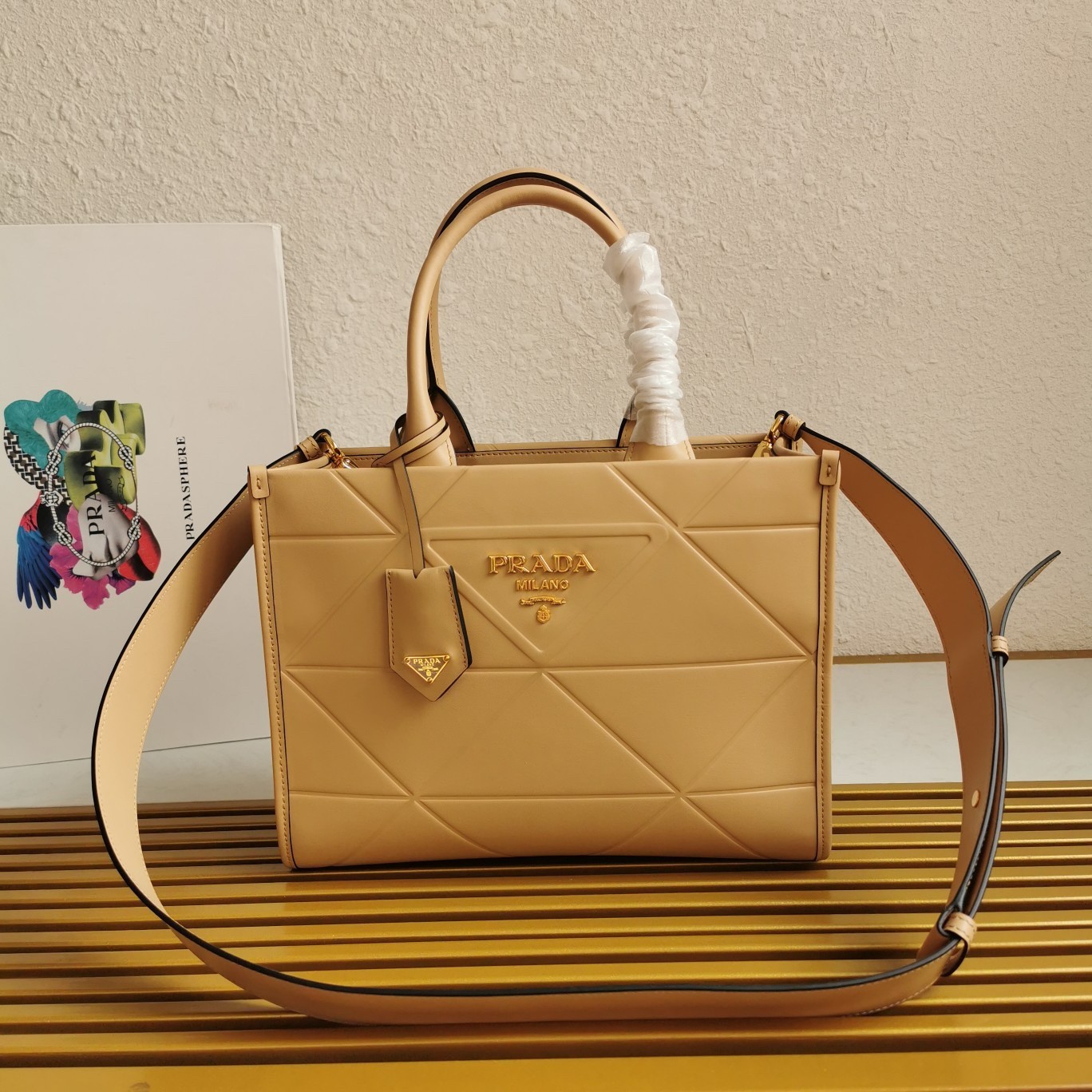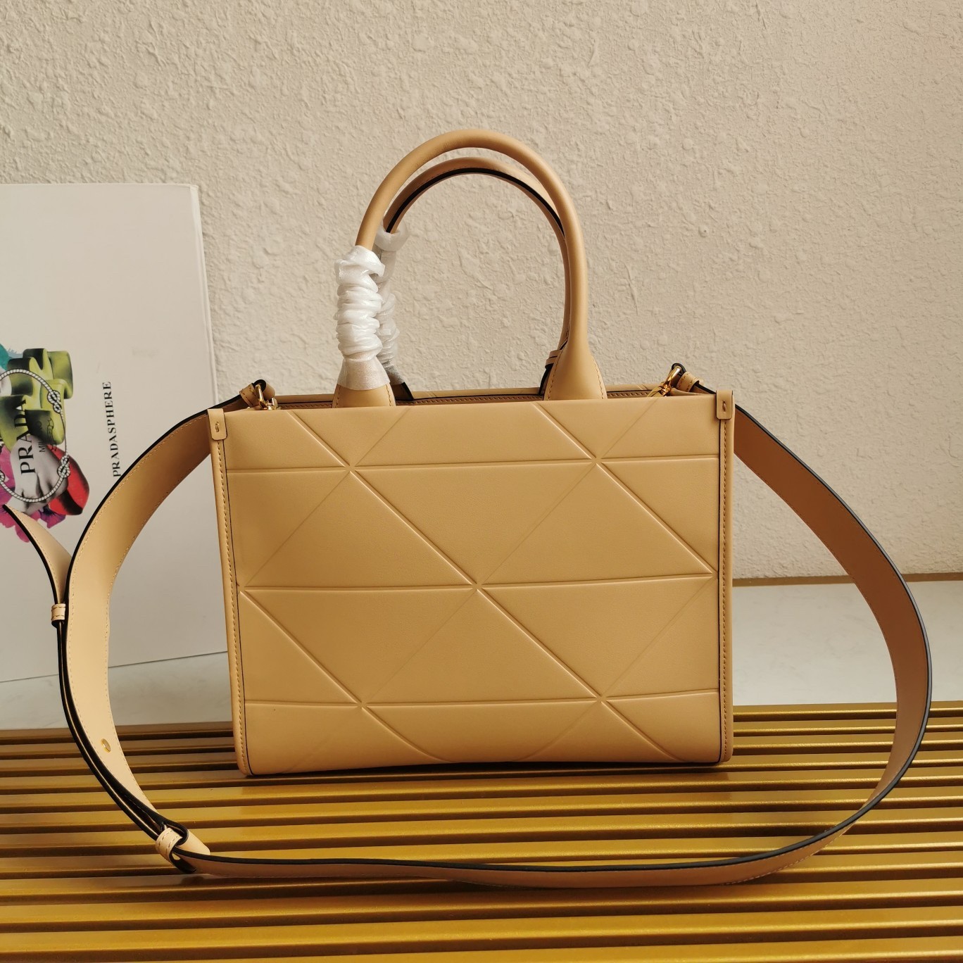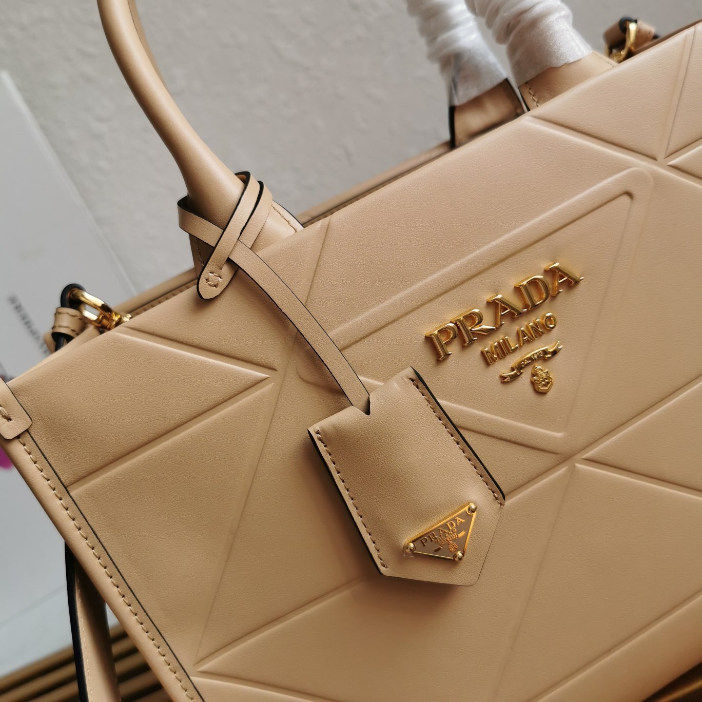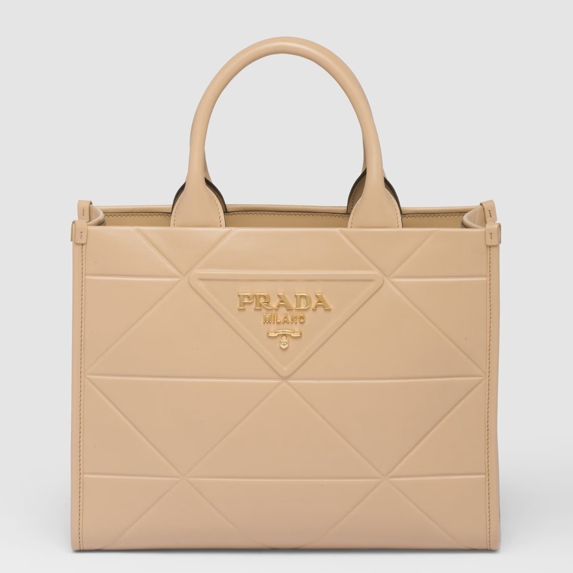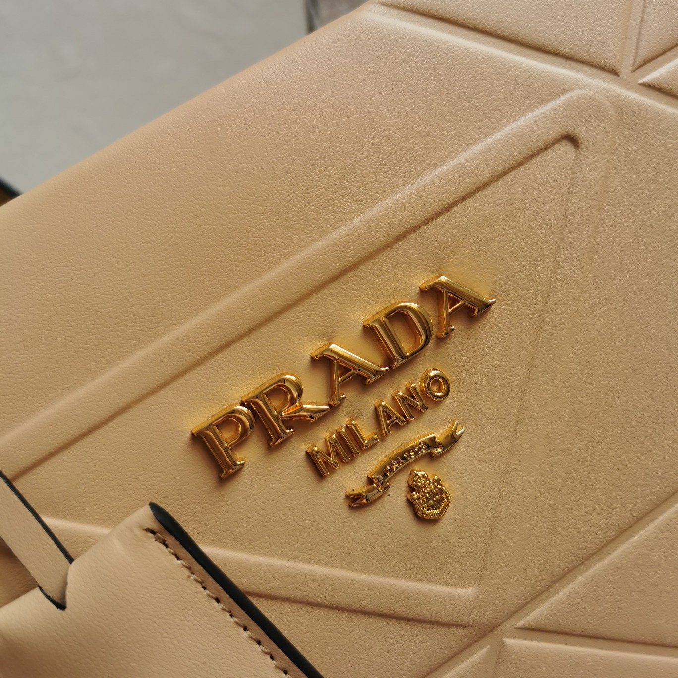 Prada Symbole Small Bag with Topstitching in Beige Leather