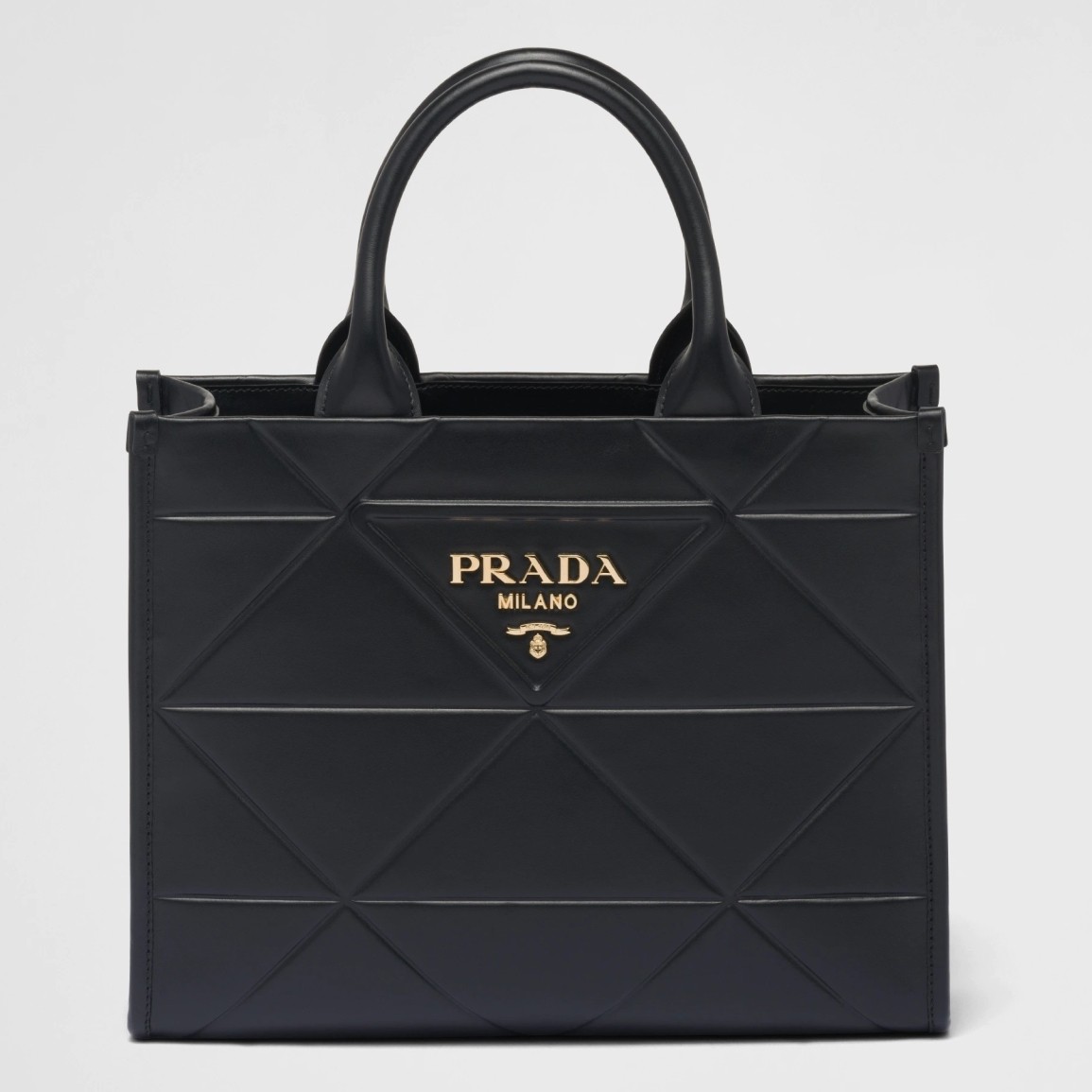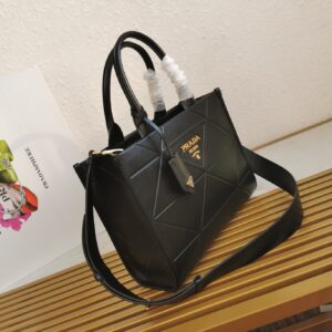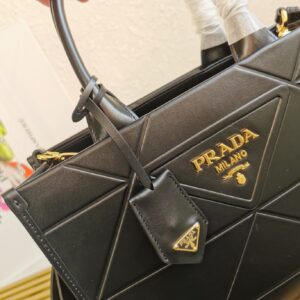 Prada Symbole Small Bag with Topstitching in Black Leather