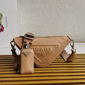 Prada Triangle Shoulder Bag In Beige Leather