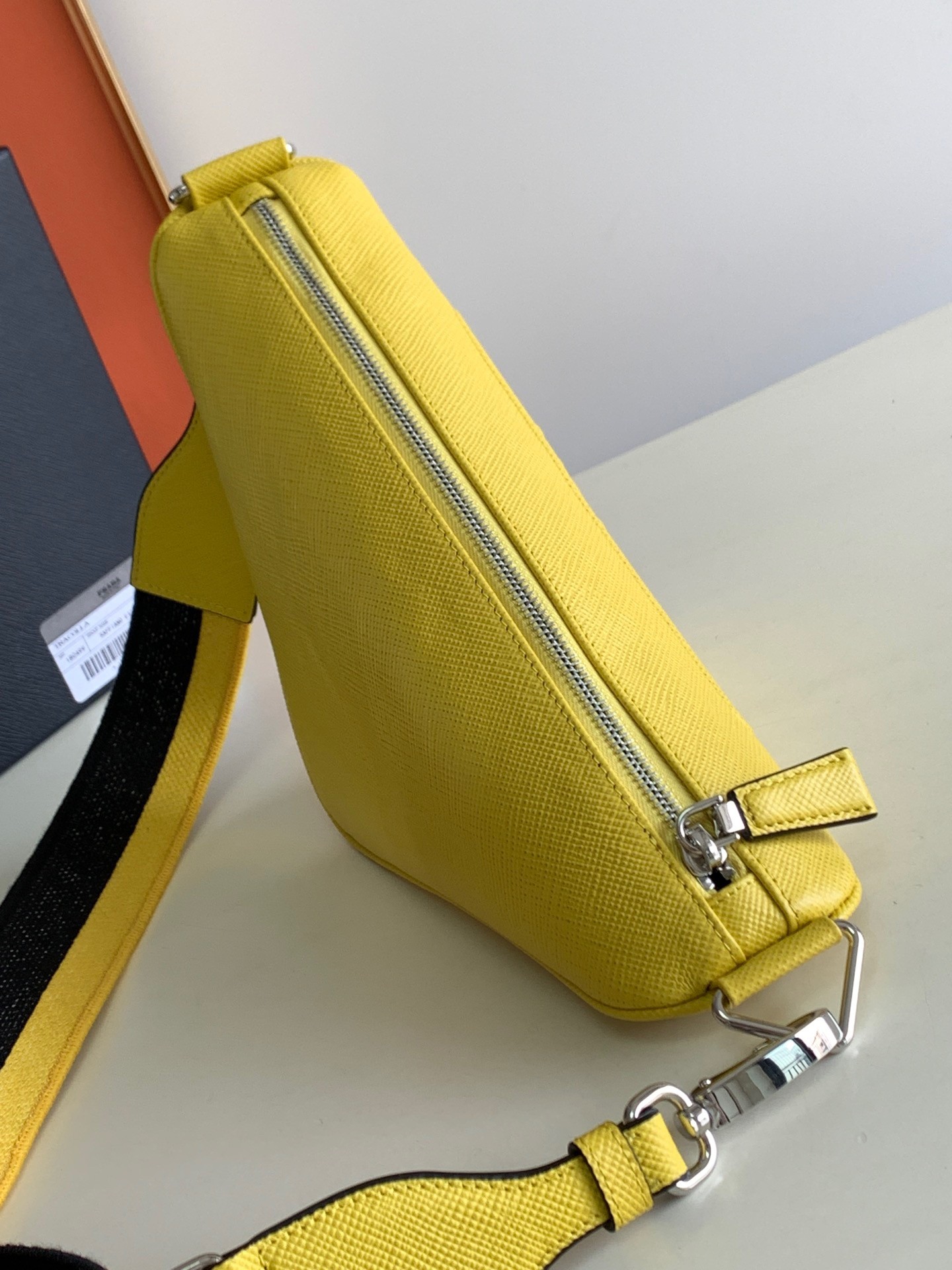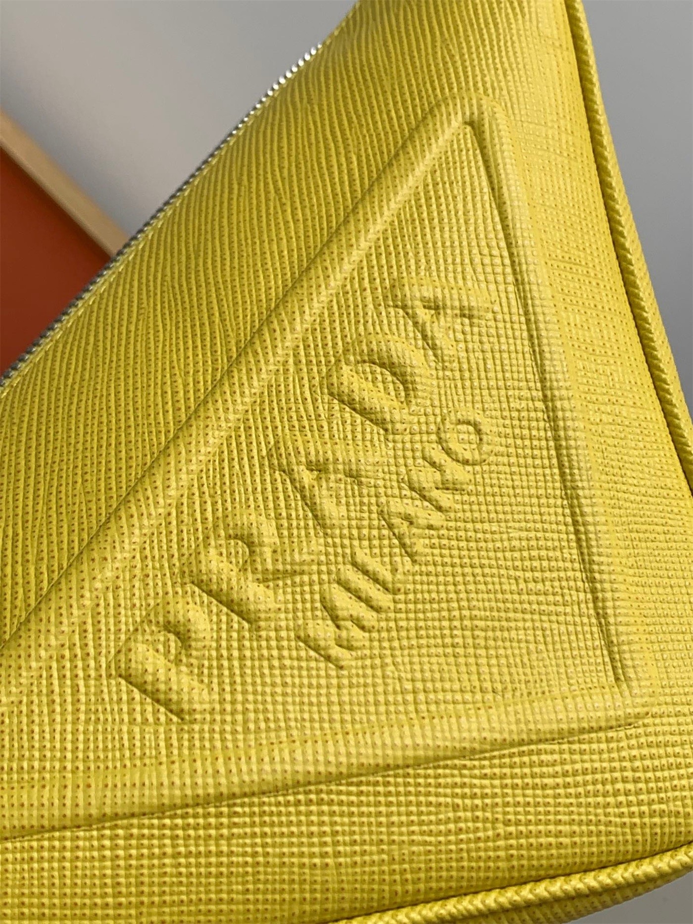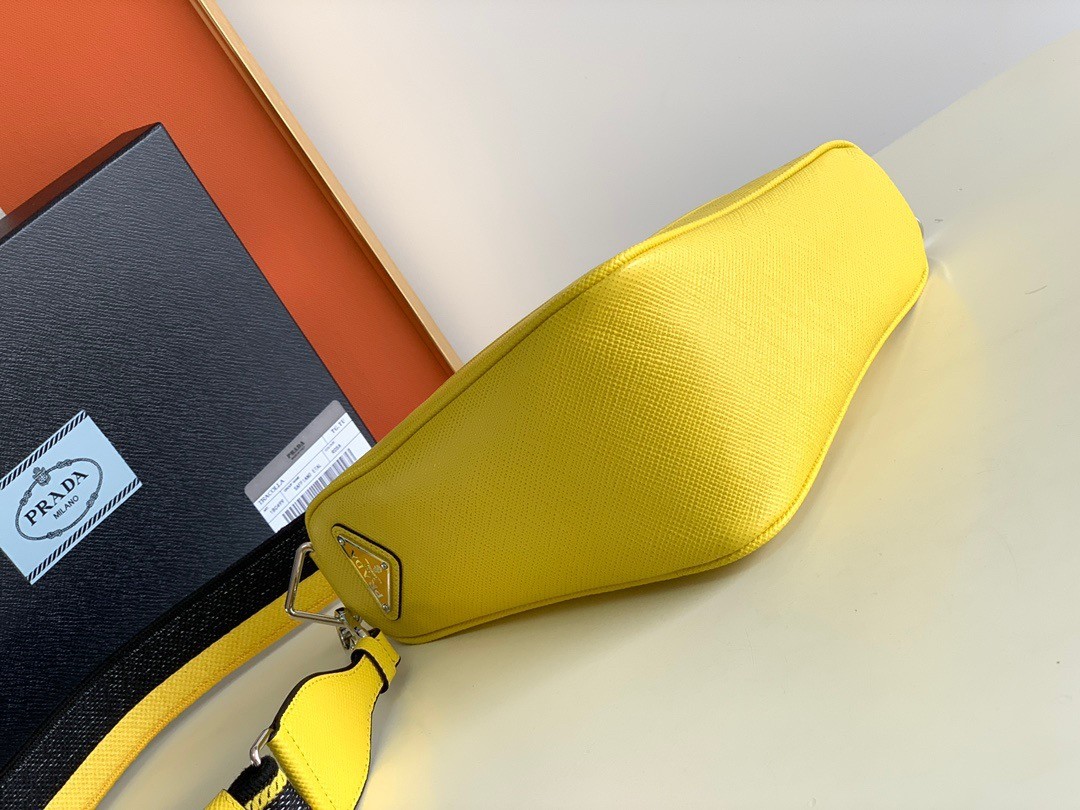 Prada Triangle Shoulder Bag In Yellow Saffiano Calfskin