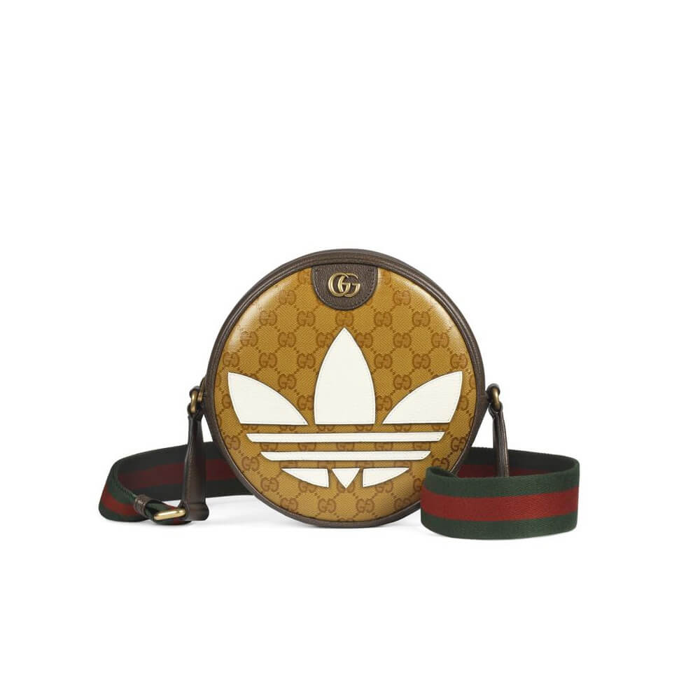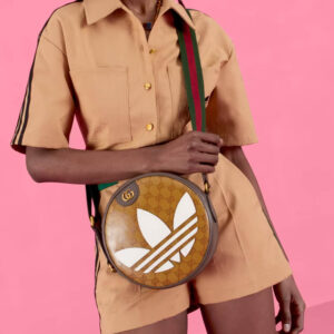 Part of the adidas x Gucci collection, this Ophidia small shoulder bag features the Trefoil patch. Emblematic House’s motifs mix with those of the historic sportswear brand adidas. The collection sees both heritages encoded in a trio of lines, where adidas and Gucci combine archival emblems. Creative Director, Alessandro Michele pulls inspiration from his memories of the ‘80s and ‘90s for a collection that is both nostalgia-driven and contemporary.