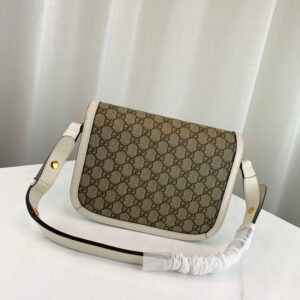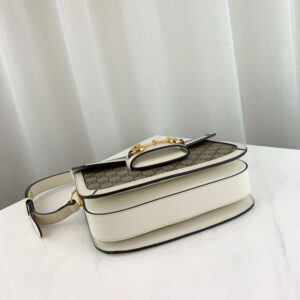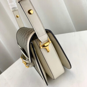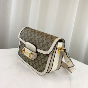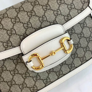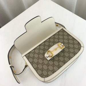 Introduced for Cruise 2020. the Gucci 1955 Horsebit bag is recreated from an archival design. With the same lines and forms first introduced over six decades ago. the accessory unifies the original details with a modern spirit. highlighting the Horsebit. Part of Gucci’s genetic code. the double ring and bar design has been established as one of the most distinctive elements among the House symbols borrowed from the equestrian world. Presented on a small flap shoulder bag. the hardware is paired with the House’s monogram fabric and completed with a special mechanism that adjusts the length of the shoulder strap so it can be carried on one shoulder or cross body.