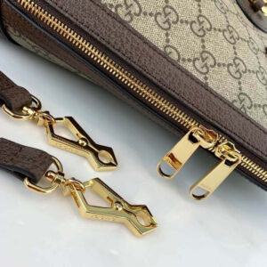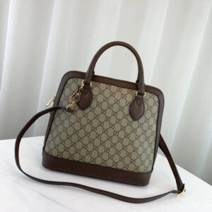 The Gucci 1955 Horsebit top-handle bag comes as part of its namesake collection. unifying features that were first introduced on a bag from over six decades ago which inspired the line with a modern spirit. Highlighting the iconic emblem in polished gold-tone hardware. the style sees contrasting BOUTIQUE lettering atop the GG Supreme printed canvas ?C a contemporary detail in keeping with current slogan trends.