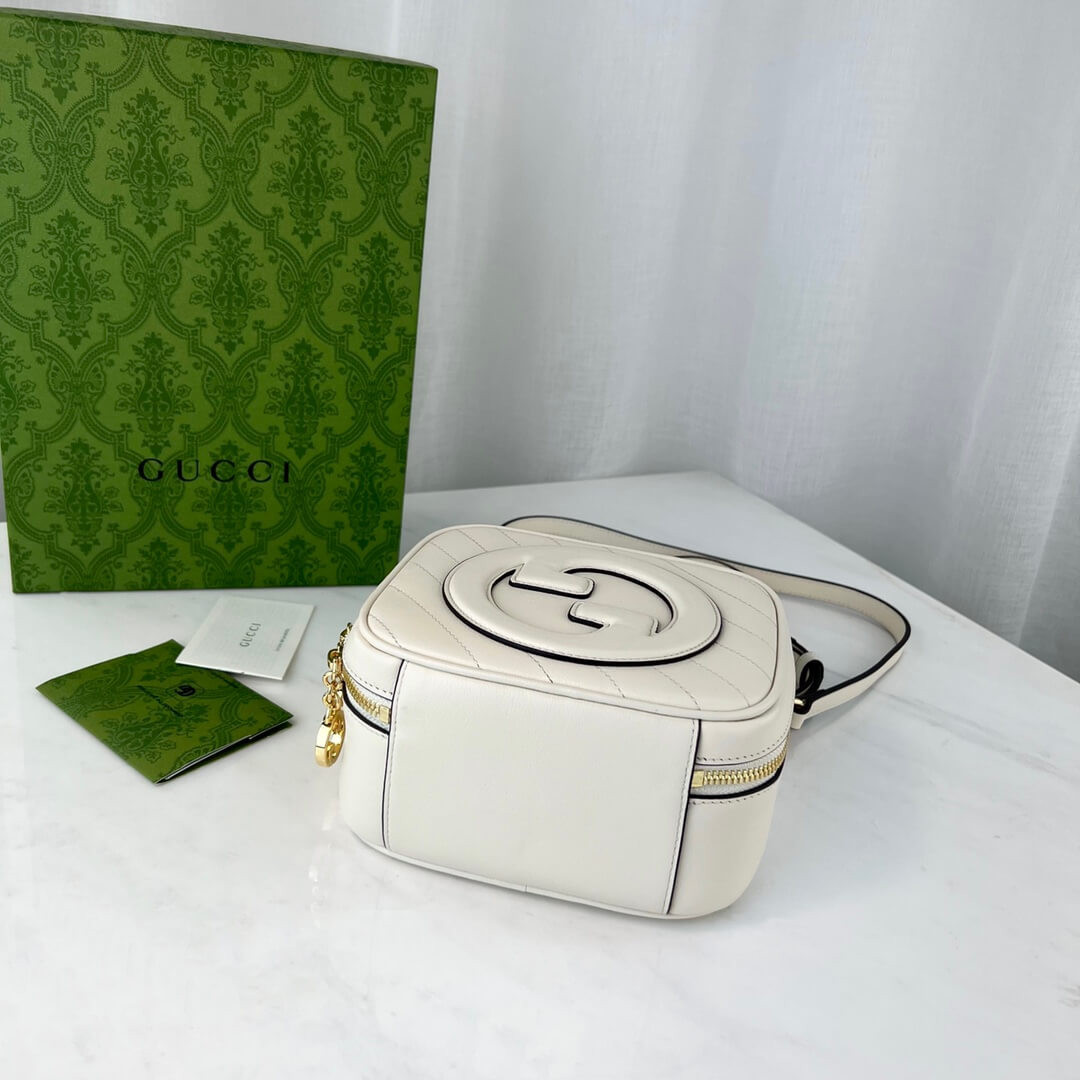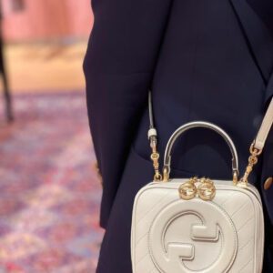 The Round Interlocking G that characterises the Gucci Blondie line originates from the House archives. Signature pieces such as this Gucci Blondie shoulder and crossbody bag with a top handle reinterprets the emblem as a subtler leather patch detail.