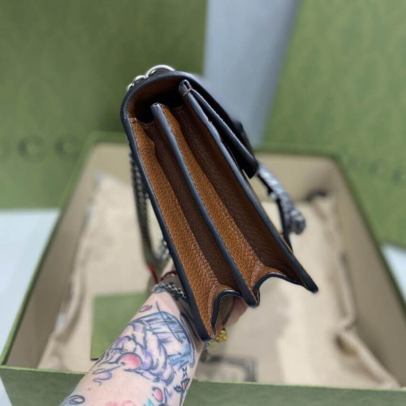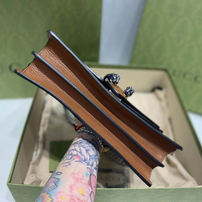 A message about leaving fashion’s old rules behind. the Epilogue collection conveys the idea that pieces should be timeless?Cnot just in fashion for one season. Among the designs are Alessandro Michele’s most emblematic styles and motifs from the past 5 years. like the Dionysus. One of the House’s Beloved lines. the bag is synonymous with its textured tiger head closure. Here. it appears as a small shoulder bag presented in organic GG jacquard denim.