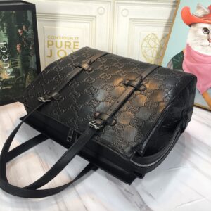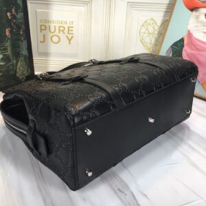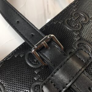 - Black GG embossed leather