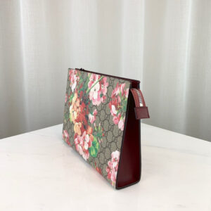 A large cosmetic case in our Blooms print on our GG Supreme canvas. The GG Blooms print was first presented throughout the Fall/Winter 2015 Fashion Show collection and has continued to evolve as an iconic Gucci design.