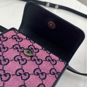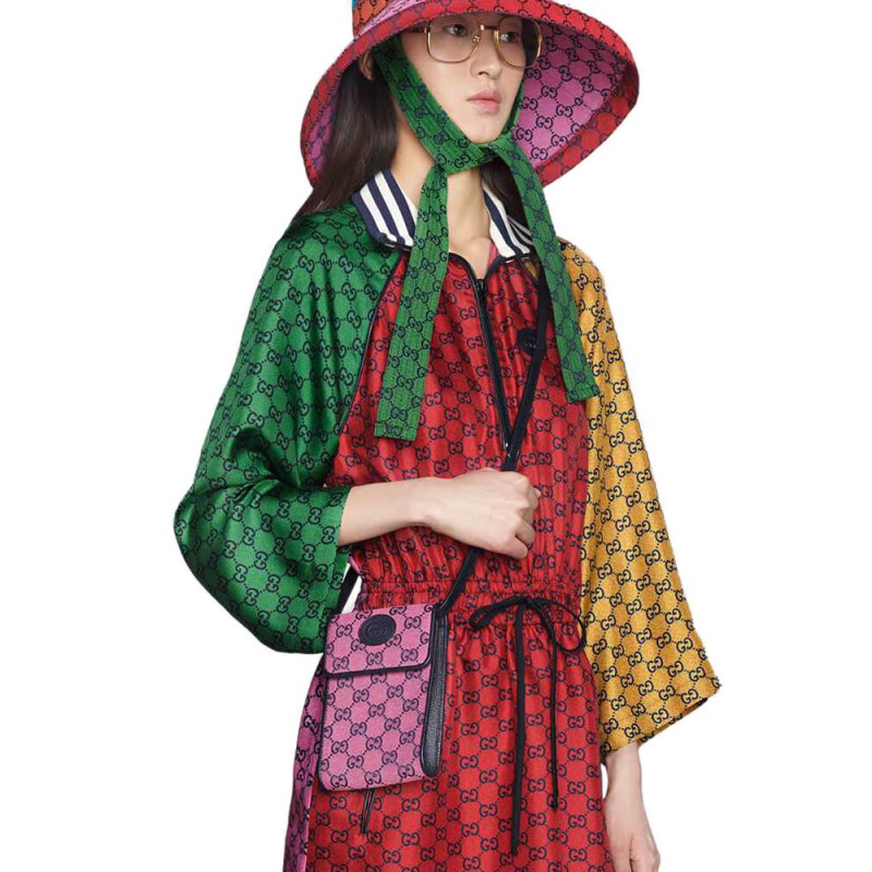 Embracing the new possibilities that lie within variations of the Gucci archives. various pieces throughout the collection provide a new lens through which to view the emblematic GG rhombi motif. Already an evolution of the House logo. it is once again reimagined in a series of bright colours??a theme that has become synonymous with the Creative Director’s vision. This mini bag is part of the GG Multicolour collection.