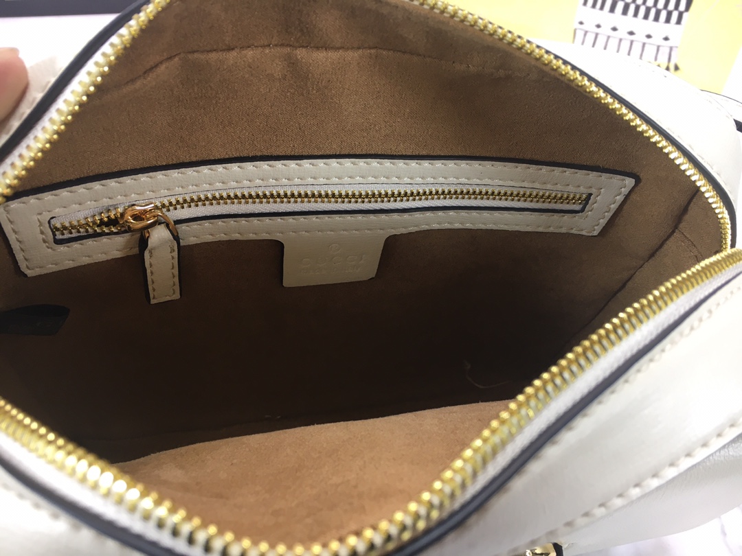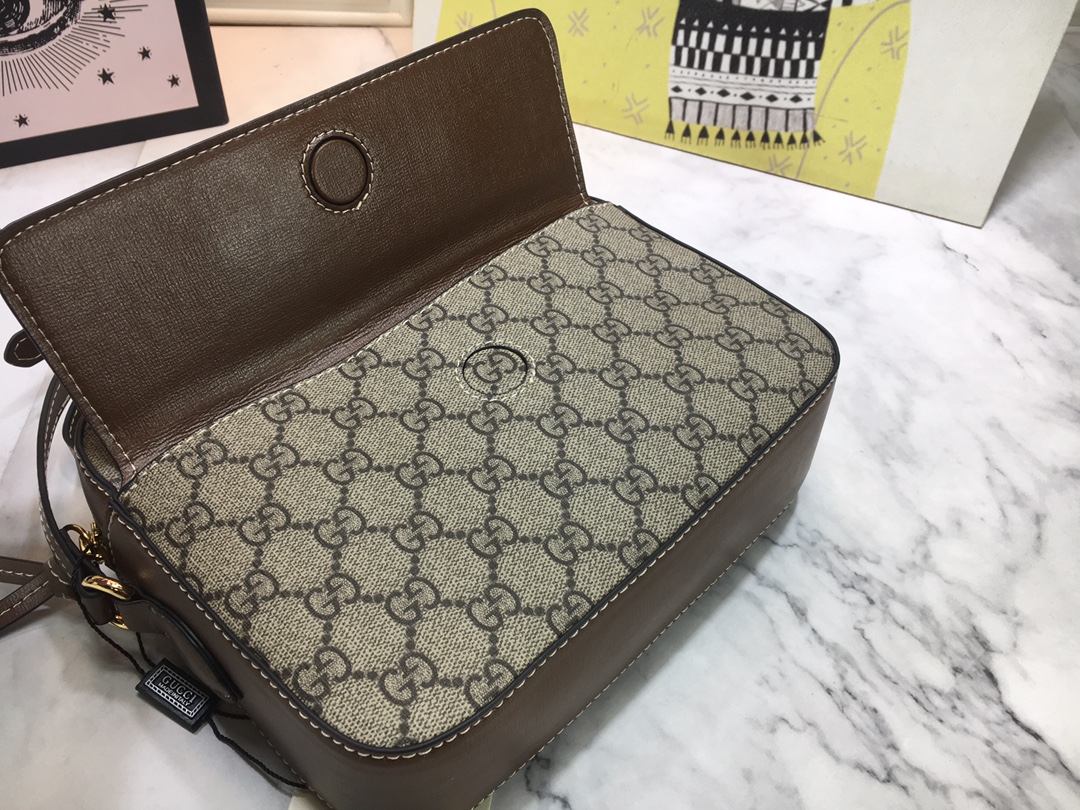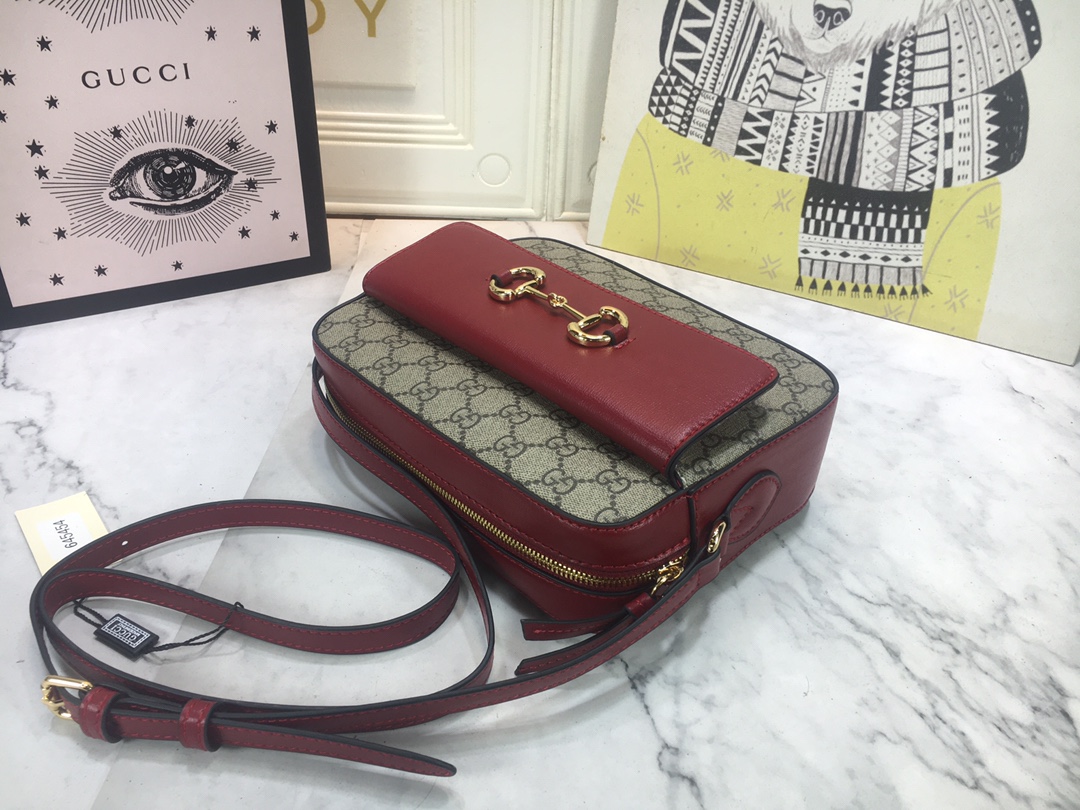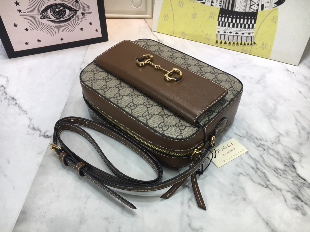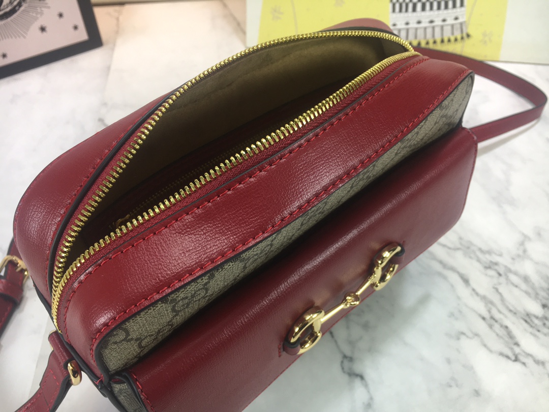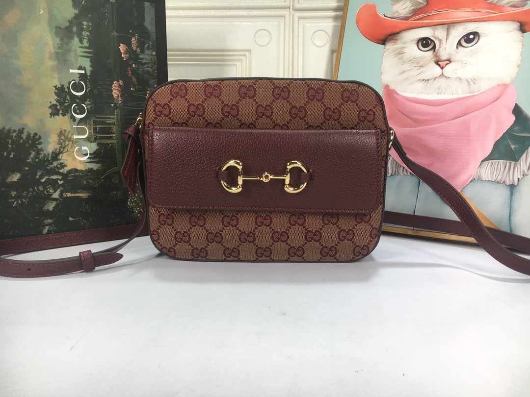 The Gucci Horsebit 1955 small bag comes in five colors and is a timeless piece that is perfect for any occasion. Measuring 22.5 x 17 x 6.5 cm. this bag is made of beige and blue GG Supreme canvas. a material that has a low environmental impact. The bag also features blue leather trim and gold-toned hardware. giving it a luxurious look. The microfiber lining has a suede-like finish. adding to the bag’s elegance. The front of the bag has a horsebit detail. which is a signature of the House. The interior of the bag has a zip pocket. and there is also a front pocket for additional storage. The bag can fit a cell phone up to 3.1W x 6.6H x .4D. The shoulder strap has a 19.7?? drop. making it easy to carry. The bag weighs approximately .46kg. The GG Supreme canvas has a historic origin and has been used in collections for decades. The blue and beige mix of the canvas defines the classic palette of this small-sized Gucci Horsebit 1955 bag.