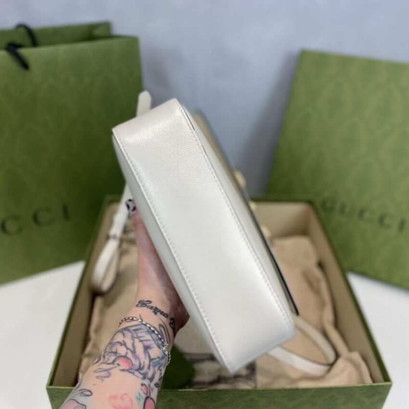 The Horsebit has become synonymous with the brand. Tracing back to Gucci’s equestrian roots. the double ring and bar design is a piece of the House’s heritage. The Epilogue collection’s Gucci Horsebit 1955 unifies this original details first introduced over six decades ago with a modern spirit in a small brown textured leather shoulder bag completed by a special mechanism that adjusts the length of the shoulder strap so it can be carried on one shoulder or cross body.