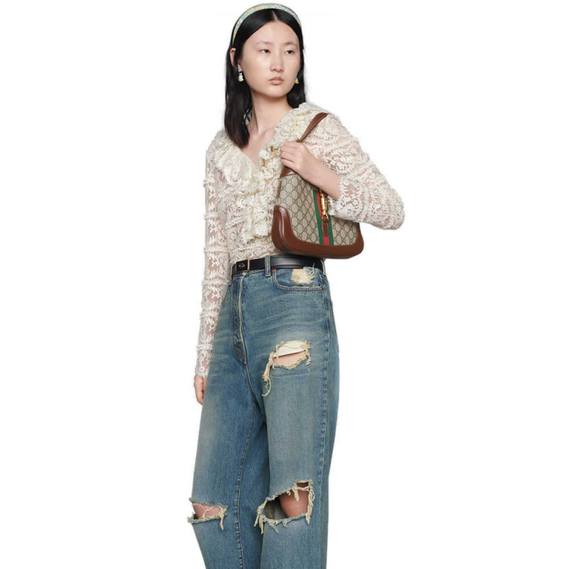 The reintroduction of the Jackie bag for Fall Winter 2020 presents a new take on a historical Gucci icon. Brought back to the forefront. the recognizable shape is presented in GG Supreme canvas and enhanced with an additional. detachable shoulder strap. Attached to the bag with a buckle closure. the second strap adds a contemporary feel to the archival style. providing new ways to wear??from top handle. shoulder to cross body. Pieces with versatile ways to wear and style embrace each person who is part of the House’s individual spirit. The Jackie 1961: available exclusively in Gucci stores and on Gucci.com