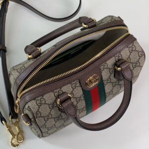 A signature fabric, GG Supreme canvas has become a staple throughout the Gucci universe. Reinterpreted through the Gucci lens, the material appears throughout the latest collections. Here, this mini top handle bag is crafted with the all-over monogram motif. Completing the logo feel, the signature Double G hardware completes the style.