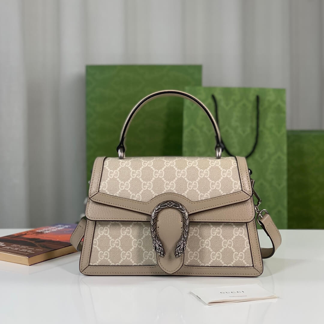 Gucci Small Dionysus Top Handle Bag 739496 Oatmeal Leather Trim