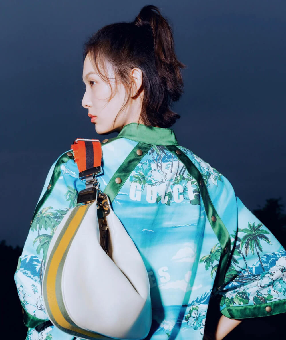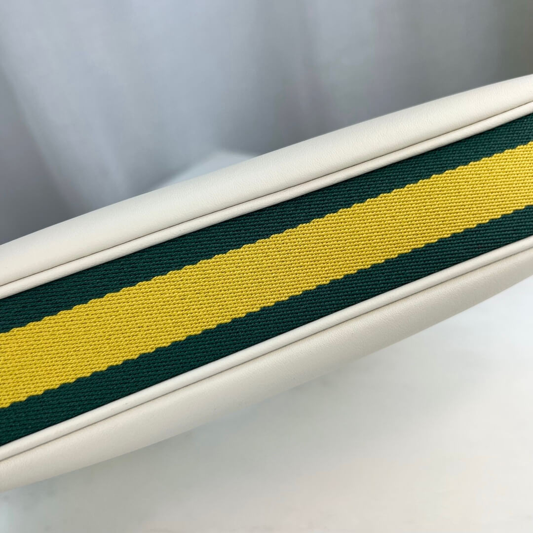 An ode to the timeless Hollywood glamour that shaped Gucci Love Parade, classic elements from the House’s archives are reintroduced. Distinguished by its crescent moon shape, the accessory is further defined by a G shaped hook closure. Paired with soft materials, the heritage hardware creates a refined design with vintage appeal. This medium version is crafted in black leather with orange and black Web trim.