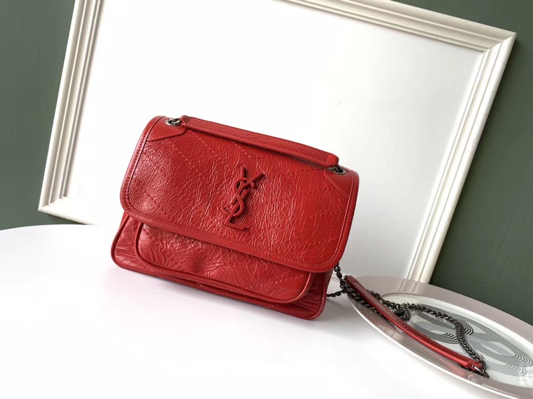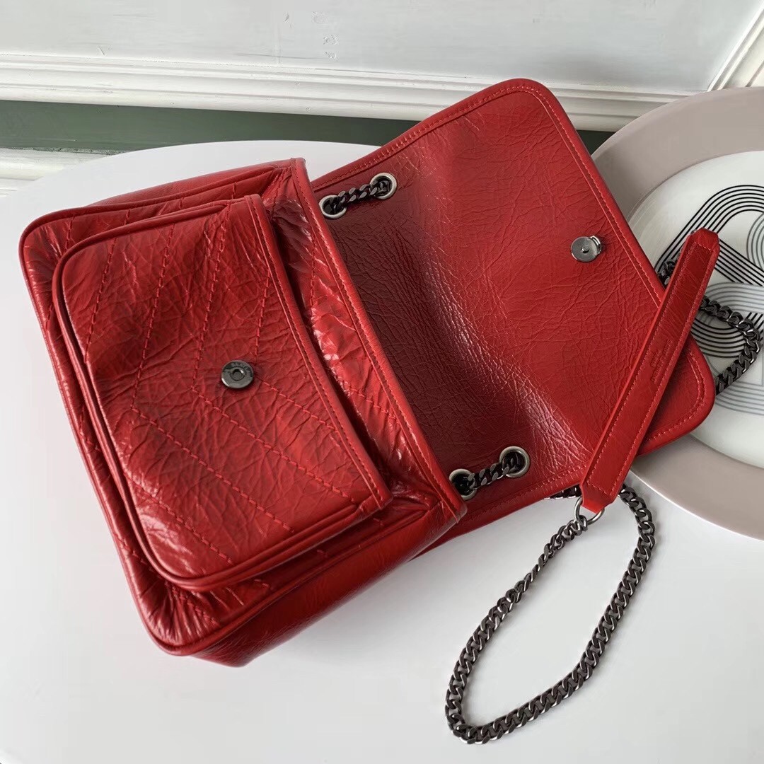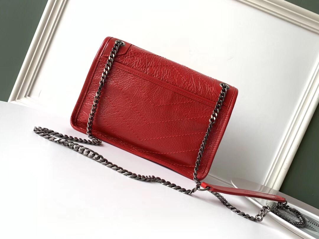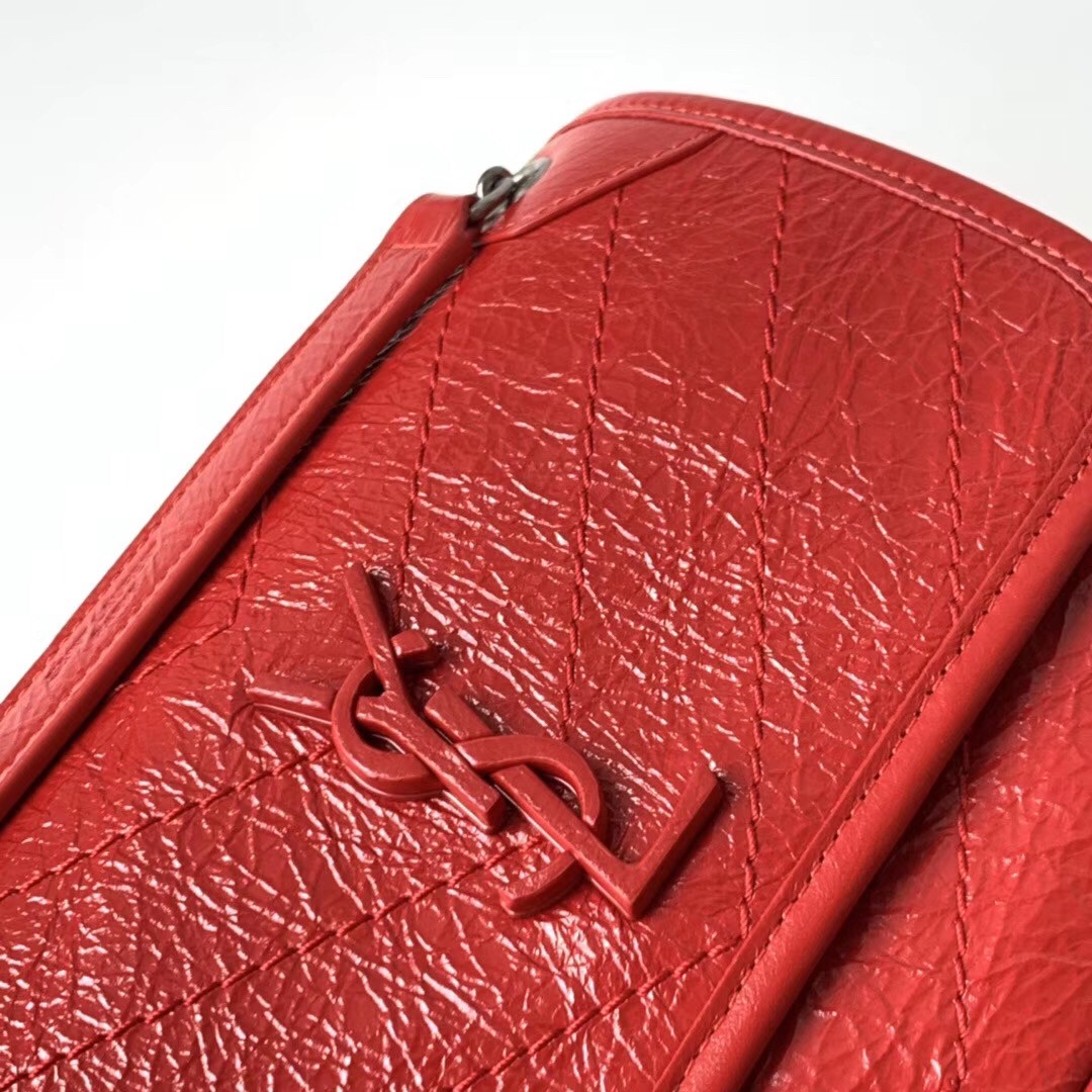 Saint Laurent Baby Niki Chain Bag In Red Crinkled Leather