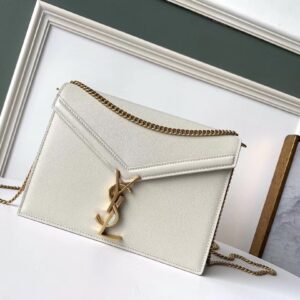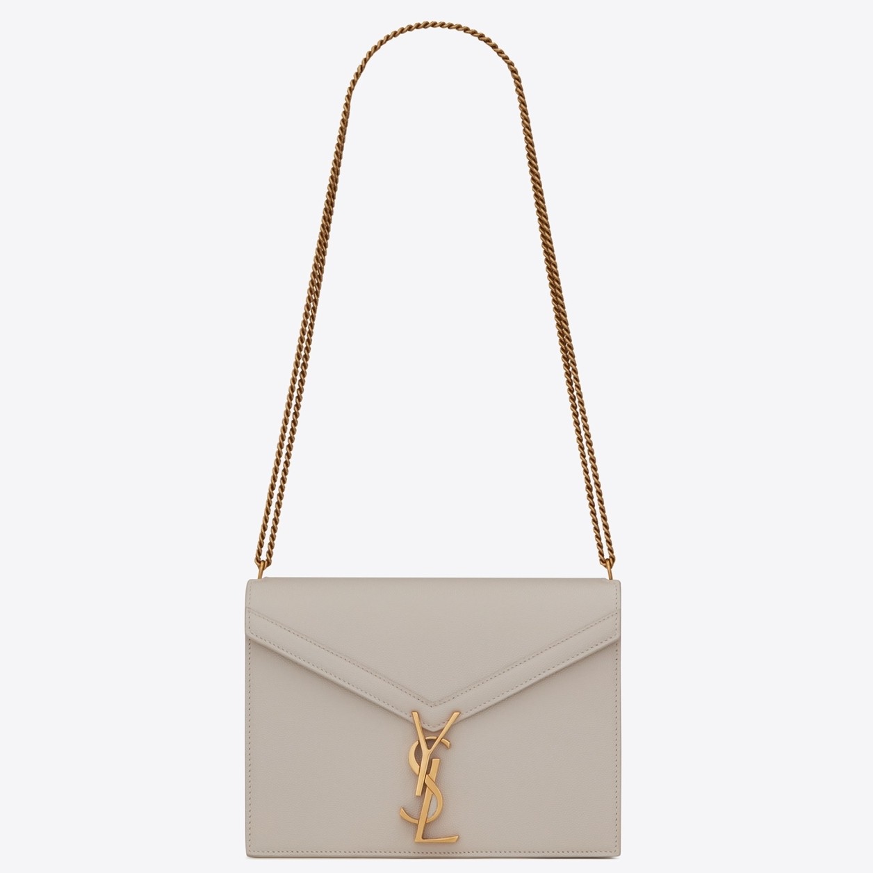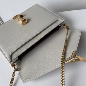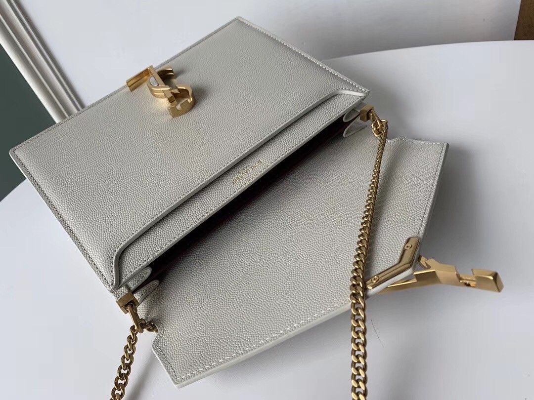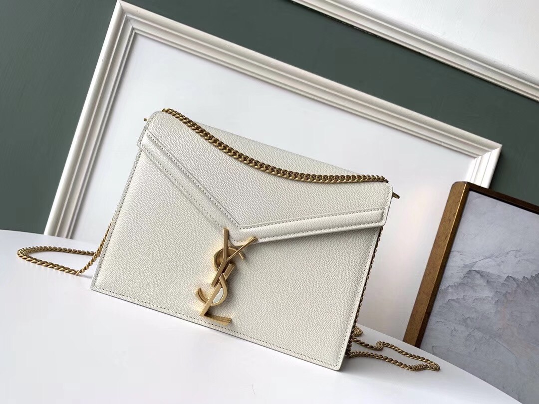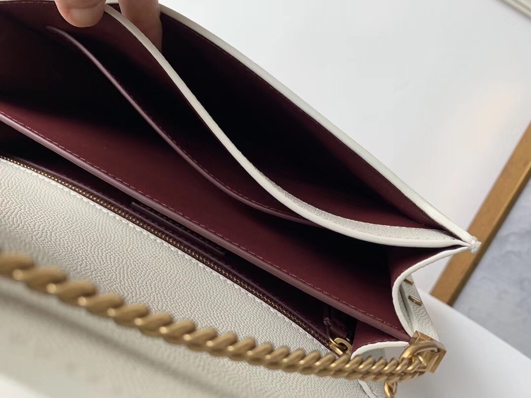 Saint Laurent Cassandra Clasp Bag In Blanc Grained Leather