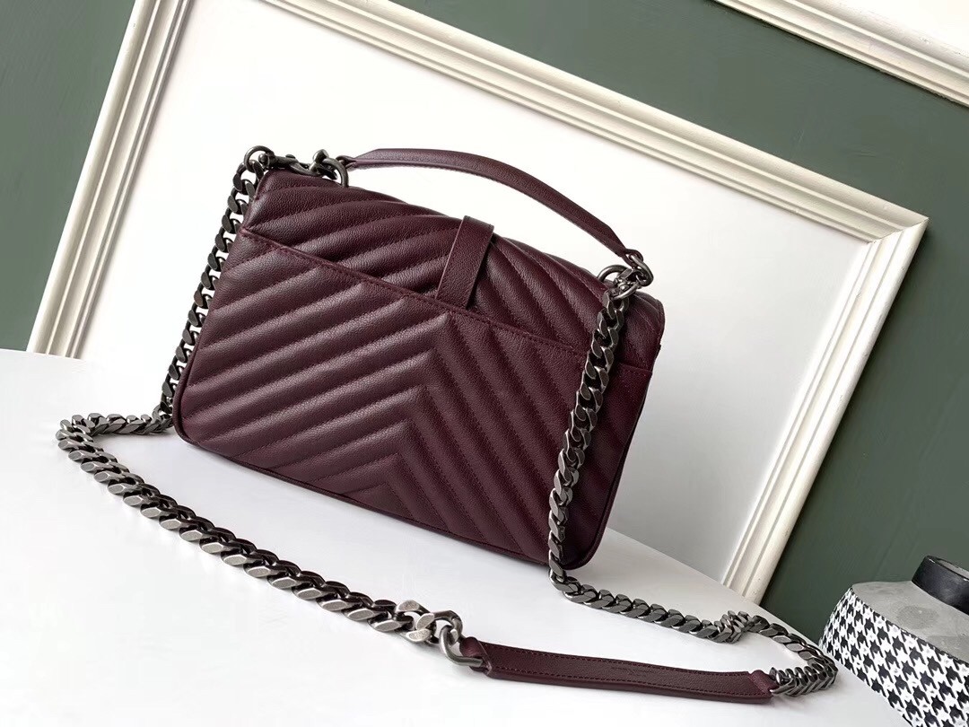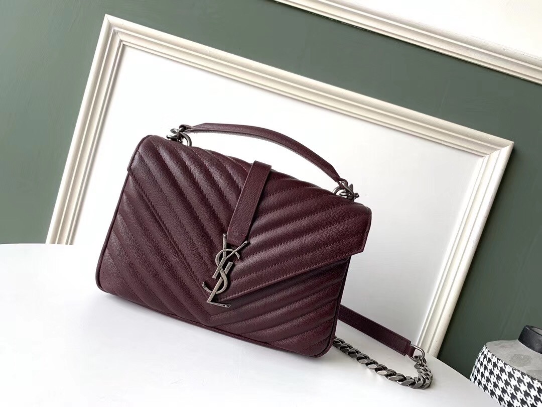 Saint Laurent College Medium Bag In Burgundy Matelasse Leather