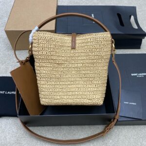 Saint Laurent Le 37 Bucket Bag in Natural Woven Raffia