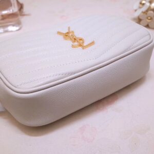 Saint Laurent Lou Mini Bag In White Grained Leather