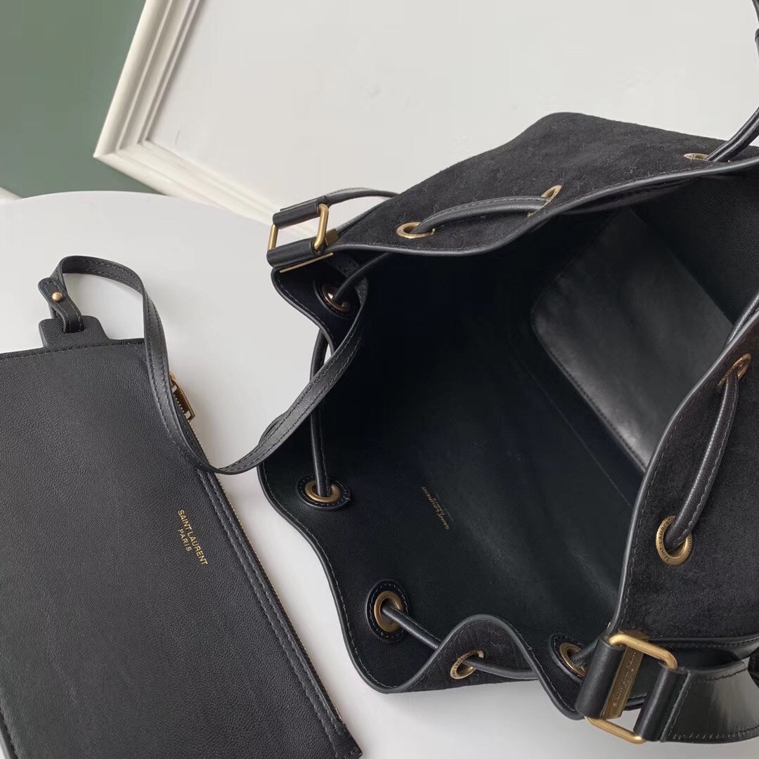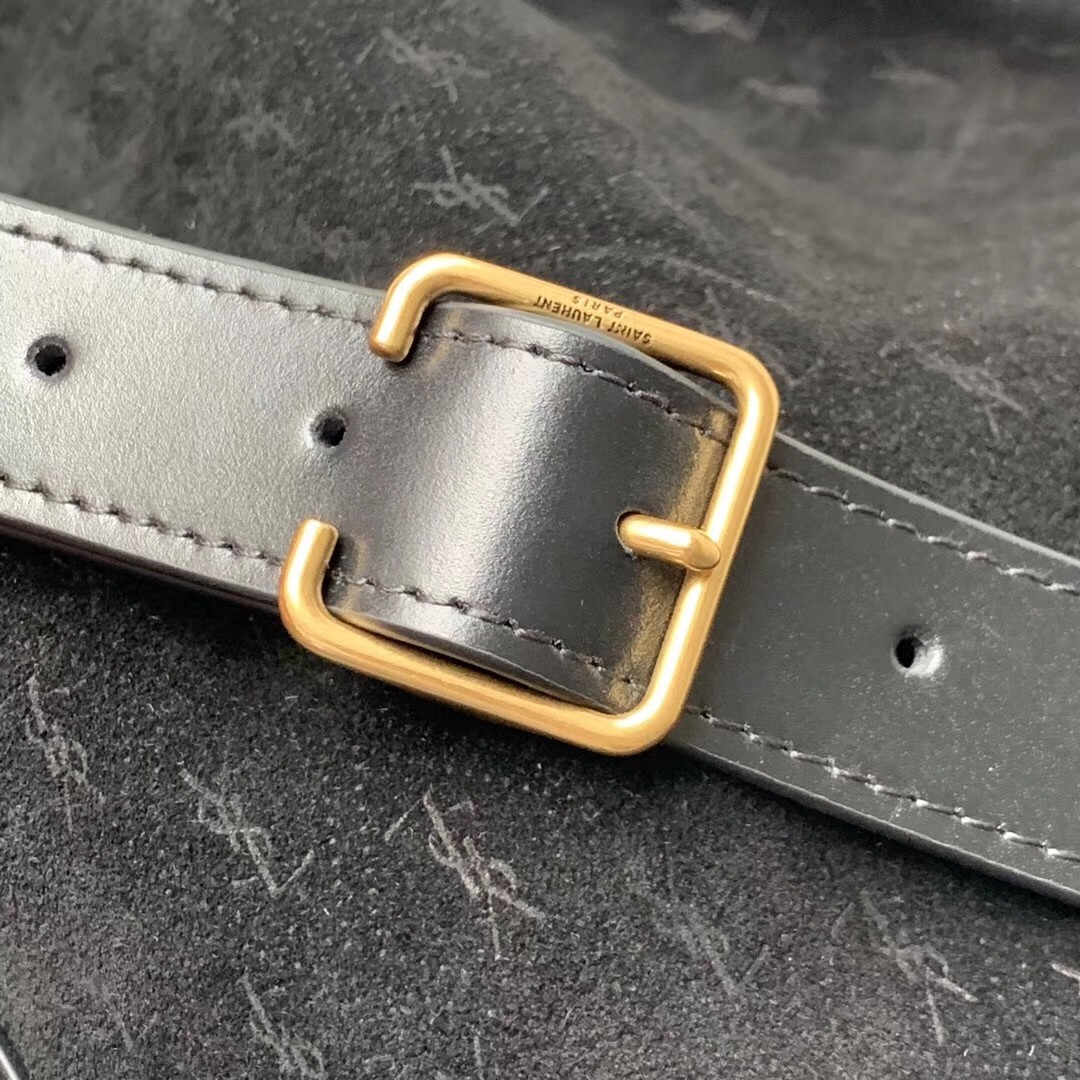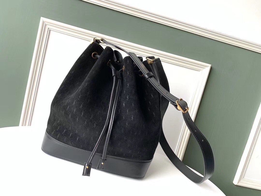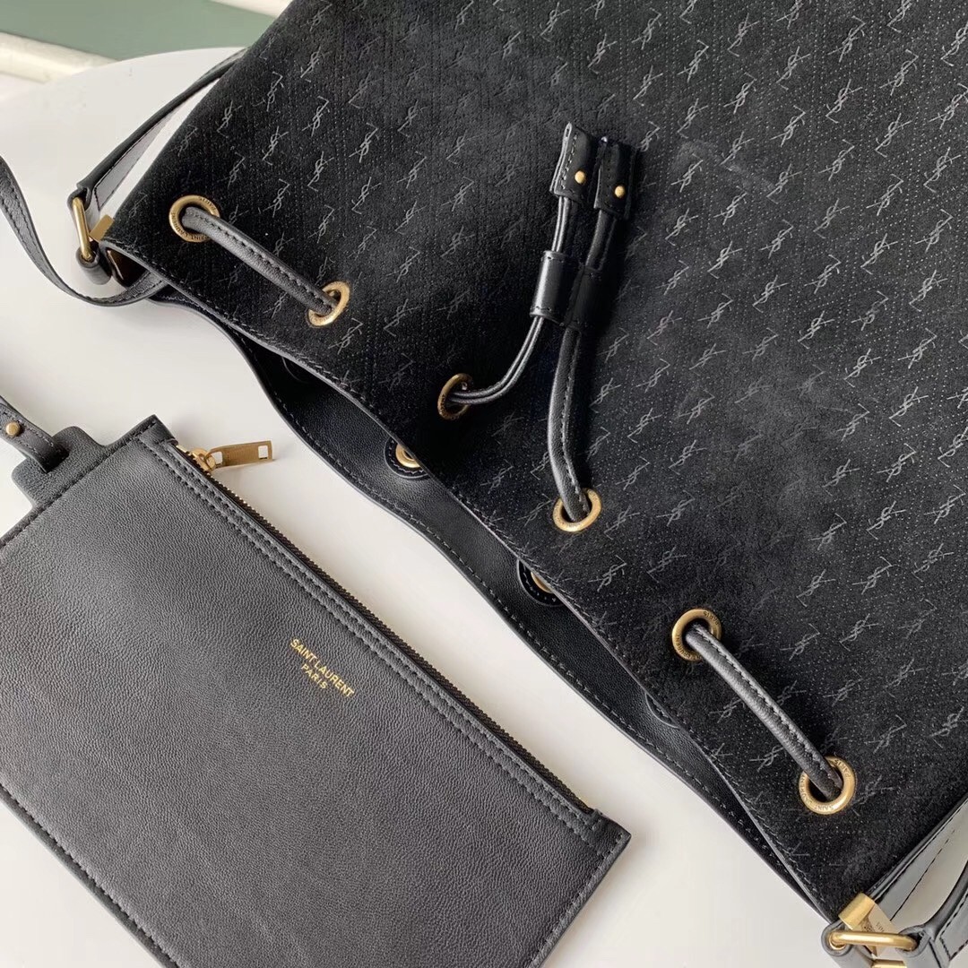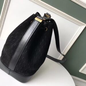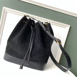 Saint Laurent Monogram All Over Bucket Bag In Black Suede