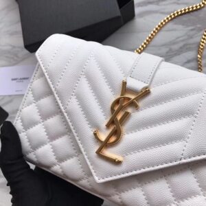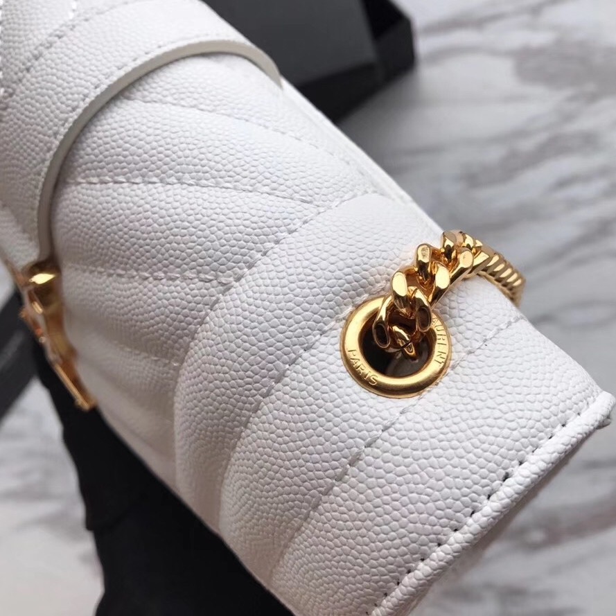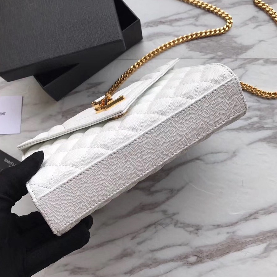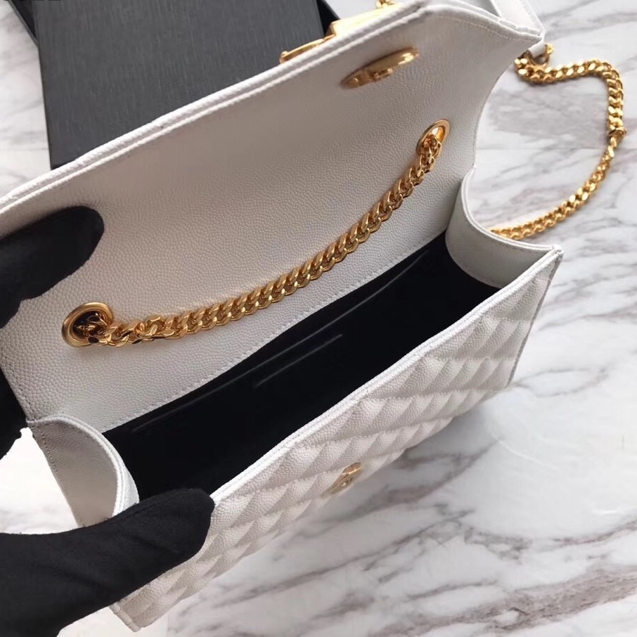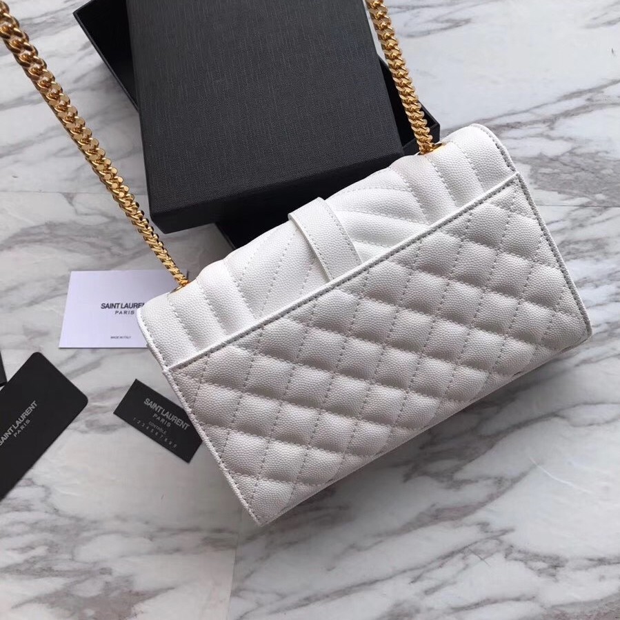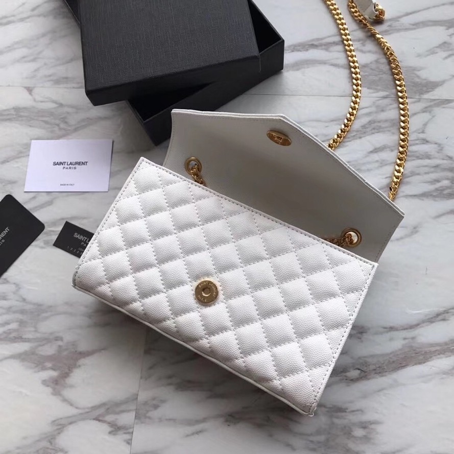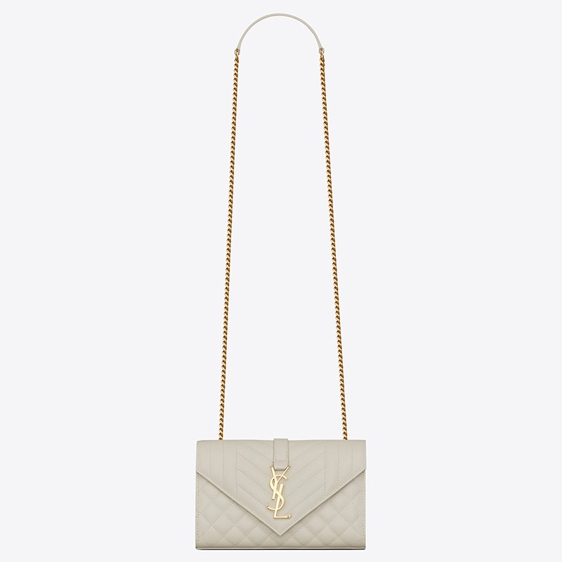 Saint Laurent Small Envelope Bag In White Grained Leather