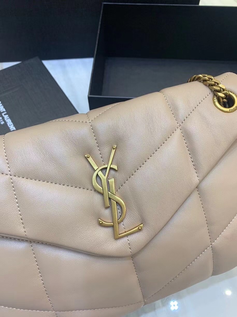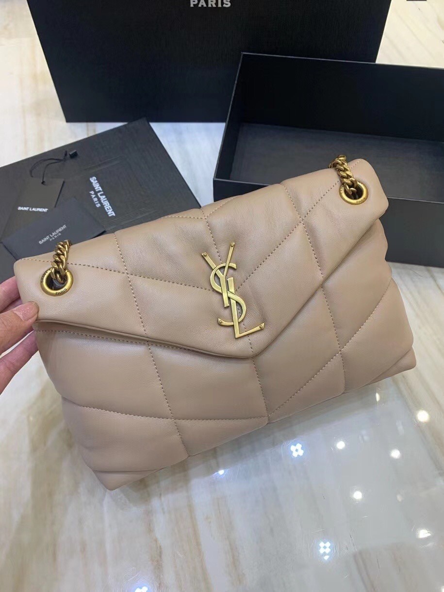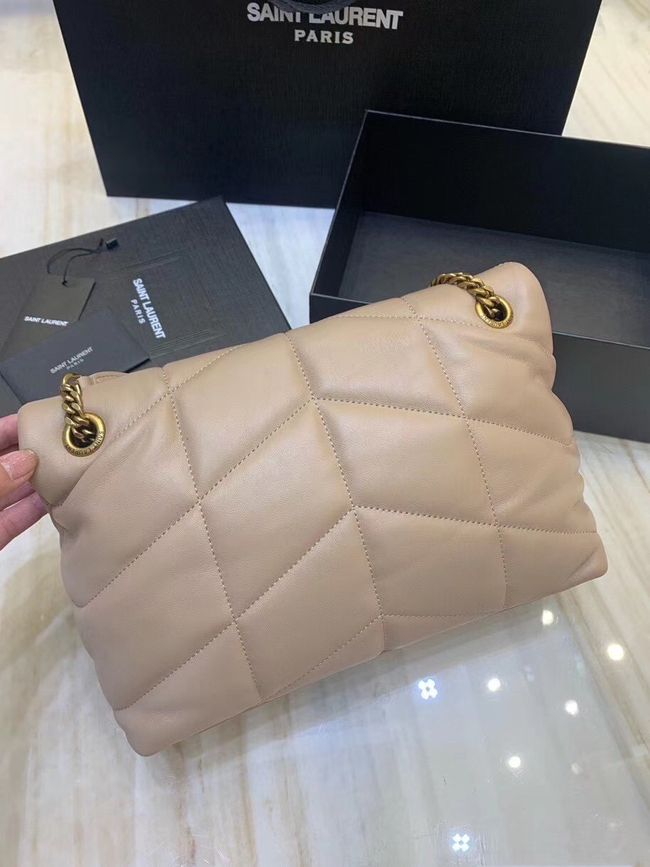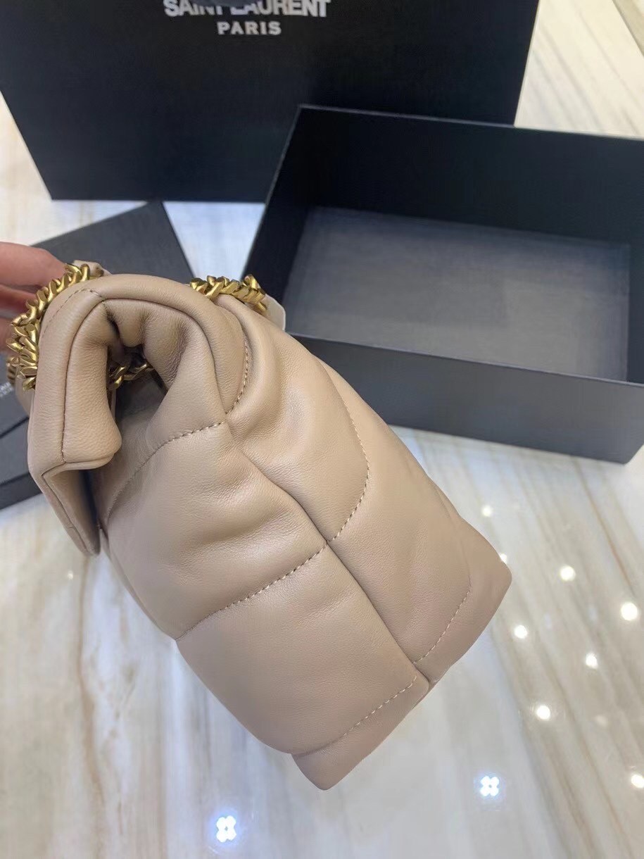 Saint Laurent Small Loulou Puffer Bag In Beige Lambskin