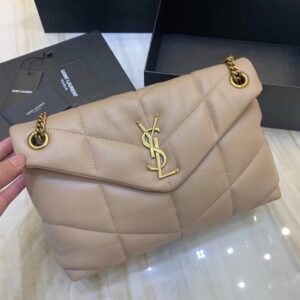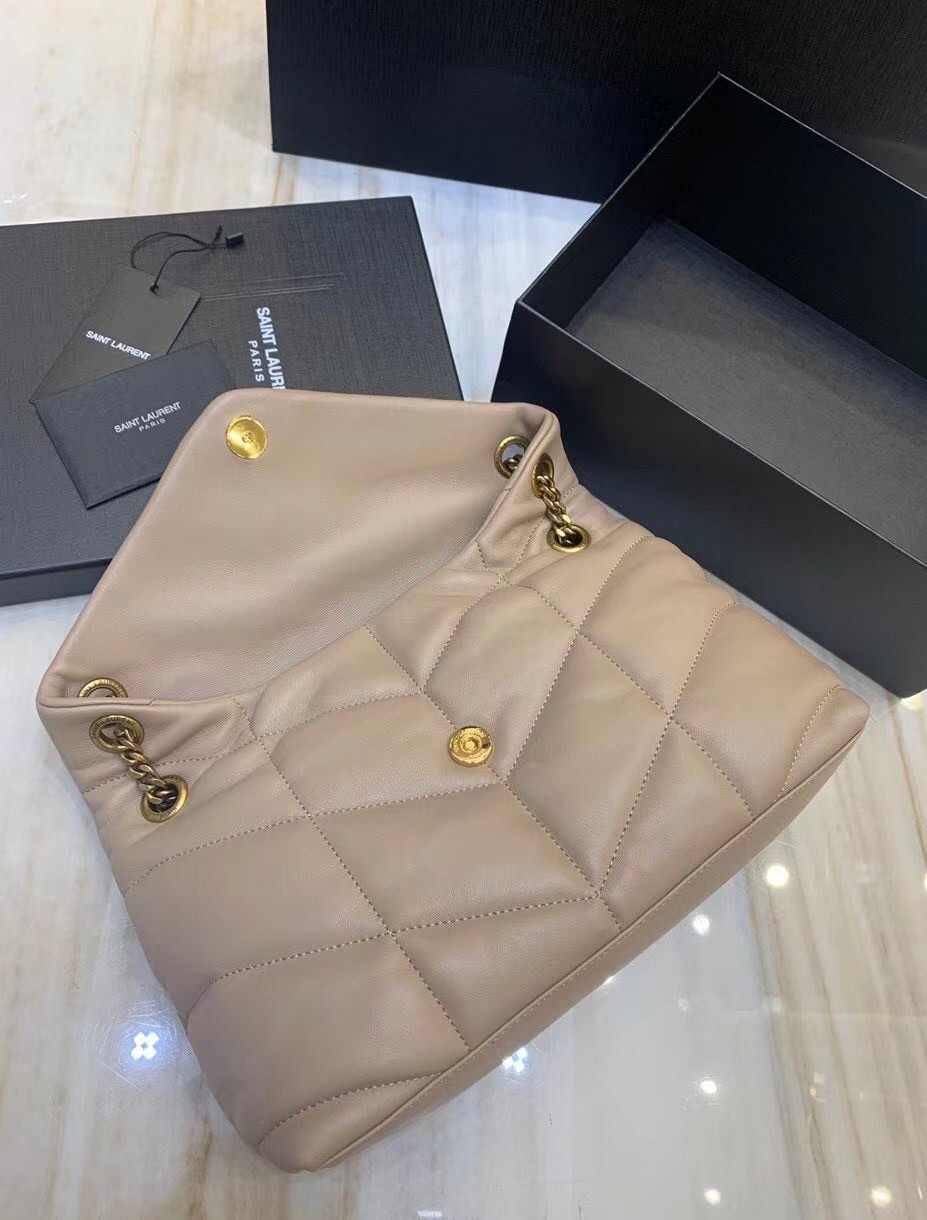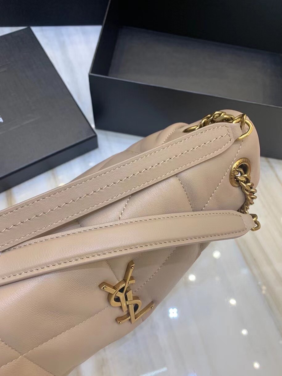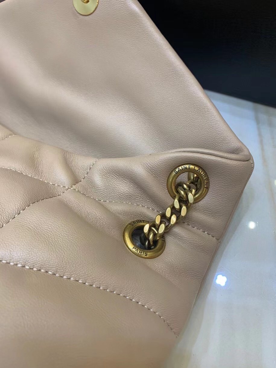 Saint Laurent Small Loulou Puffer Bag In Beige Lambskin
