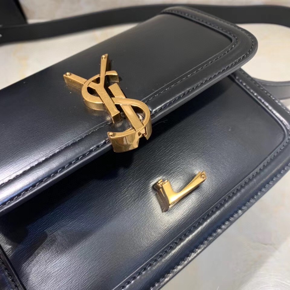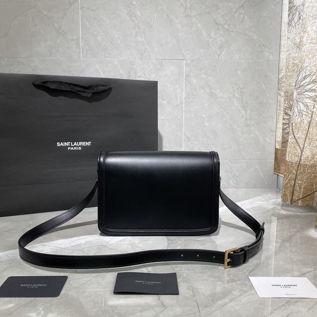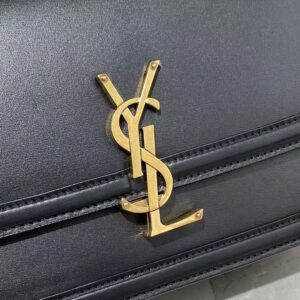 – Front flap and pivoting metal YSL closure