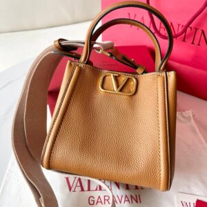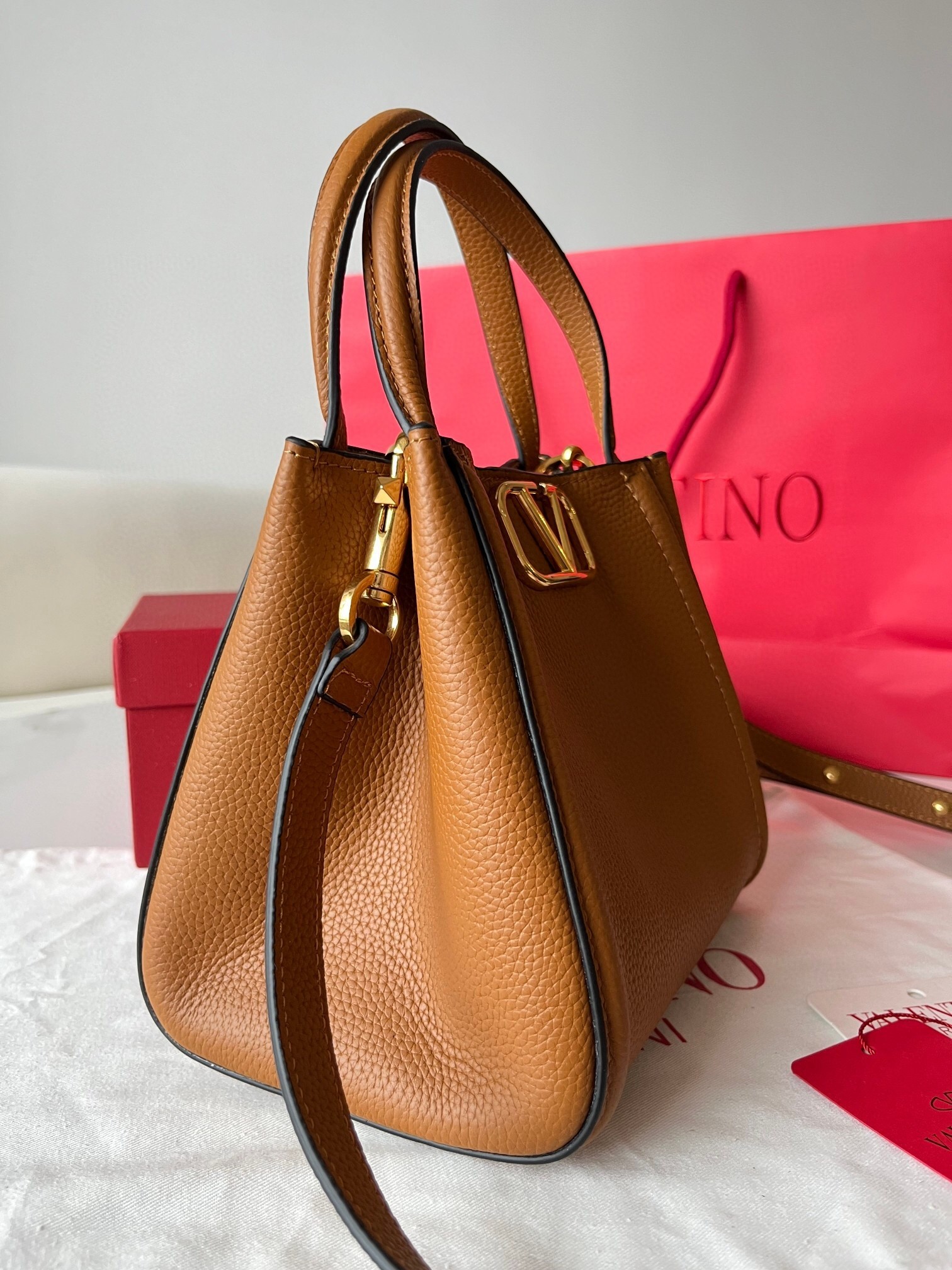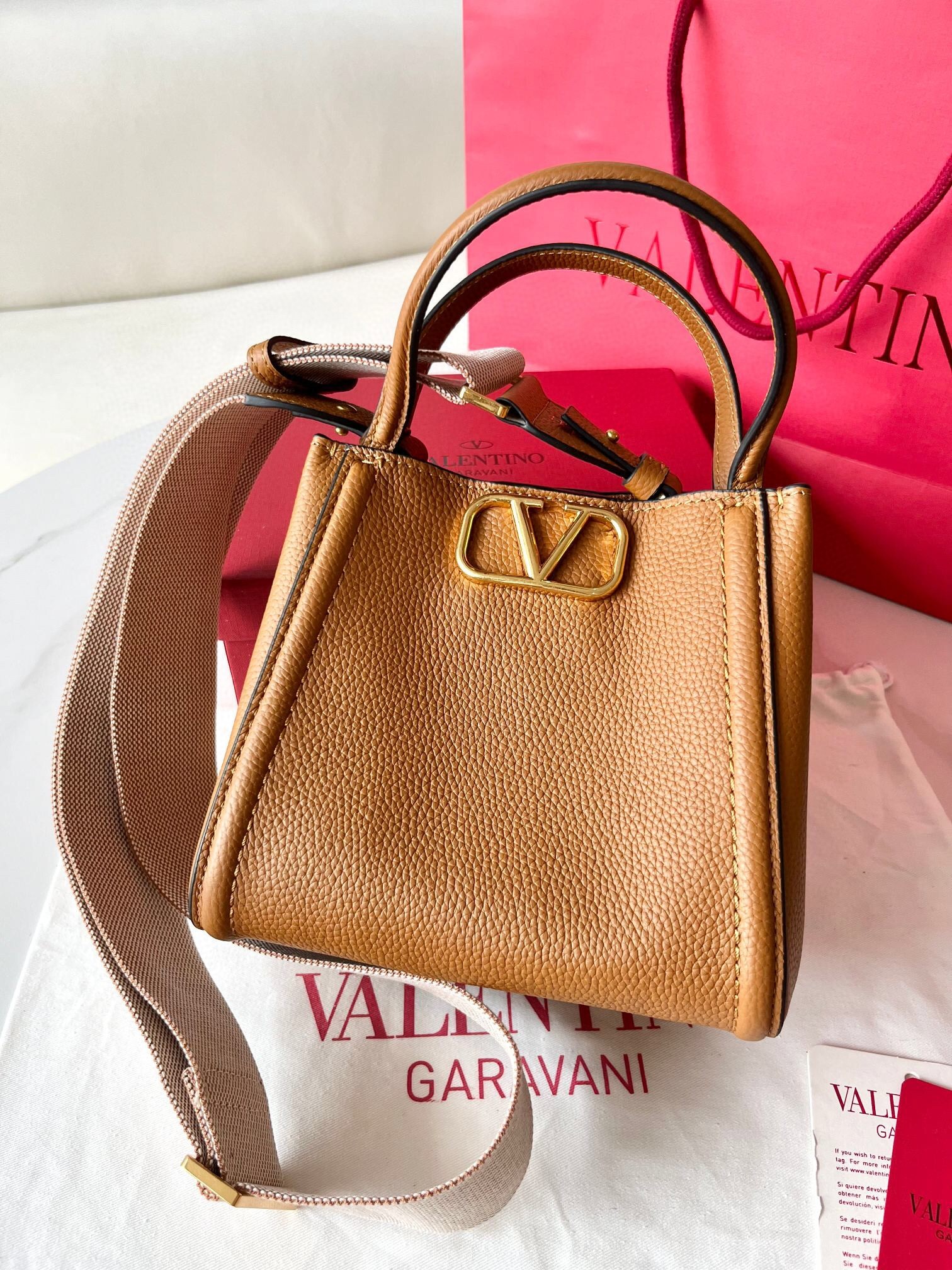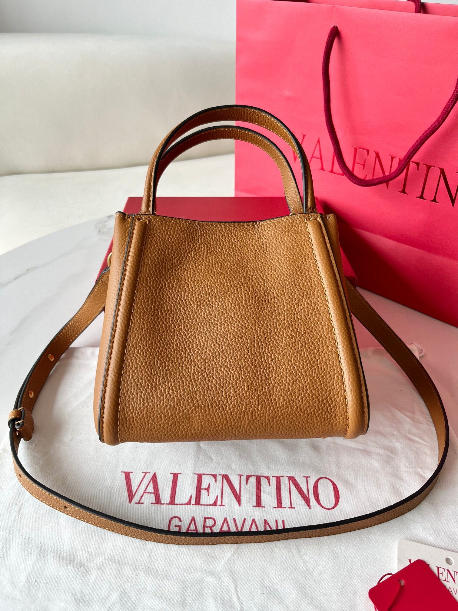 Valentino Alltime Small Bag in Brown Grained Calfskin