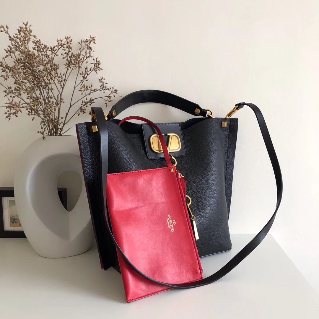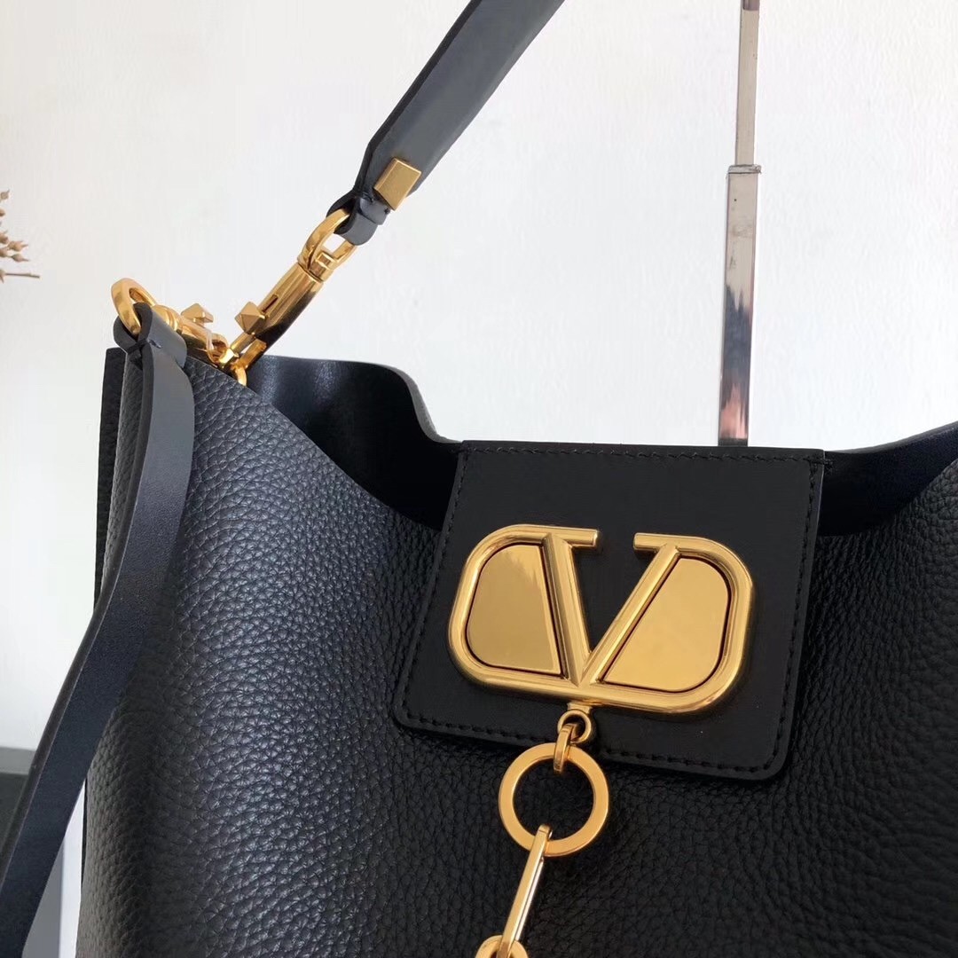 Valentino Escape Hobo Bag In Black Grained Calfskin