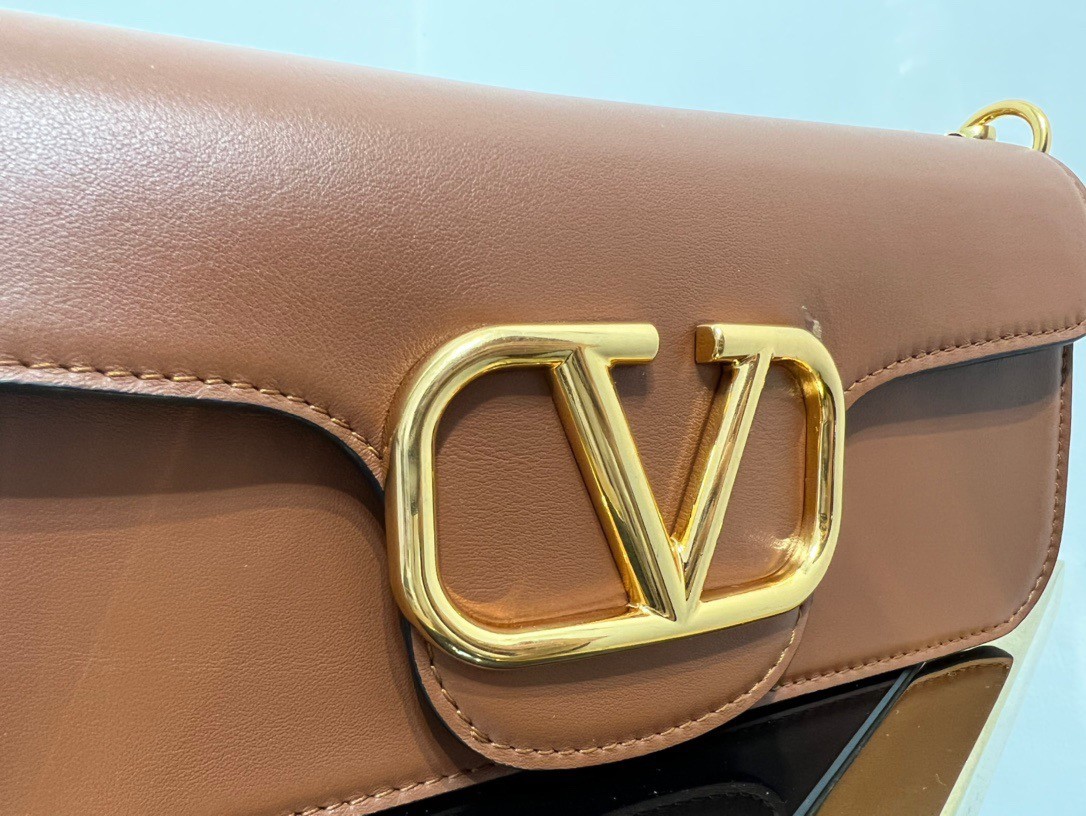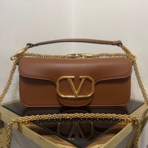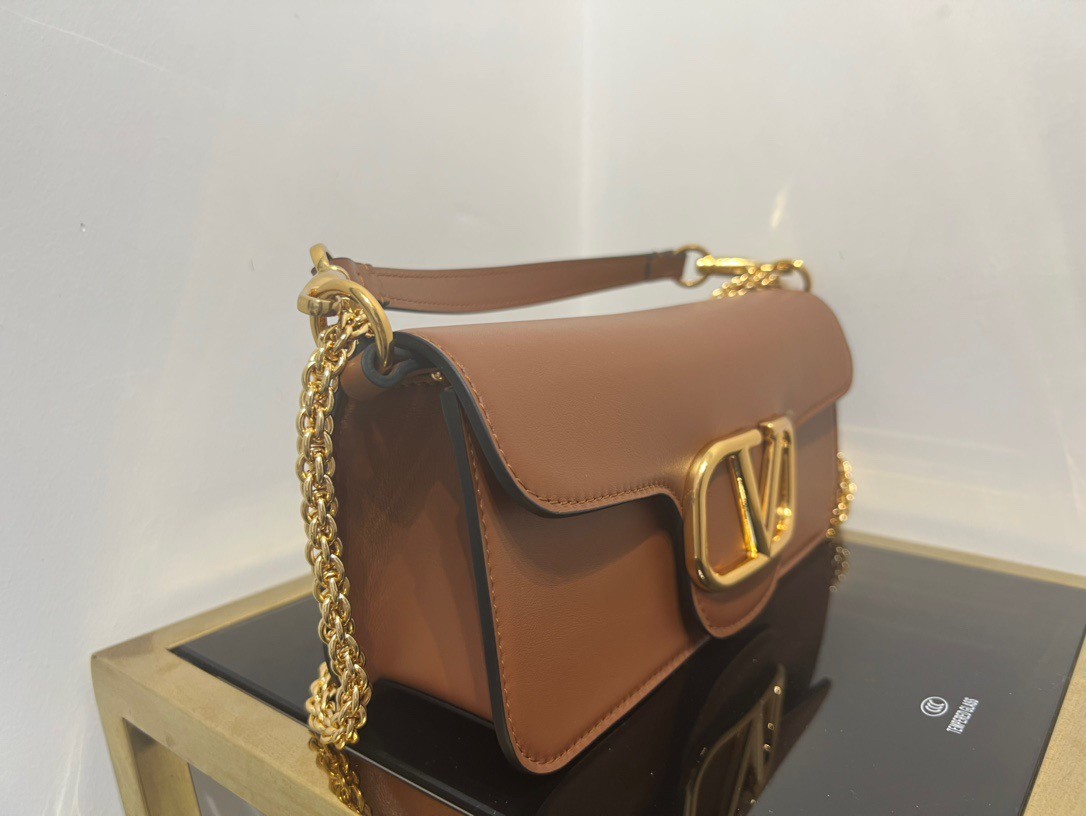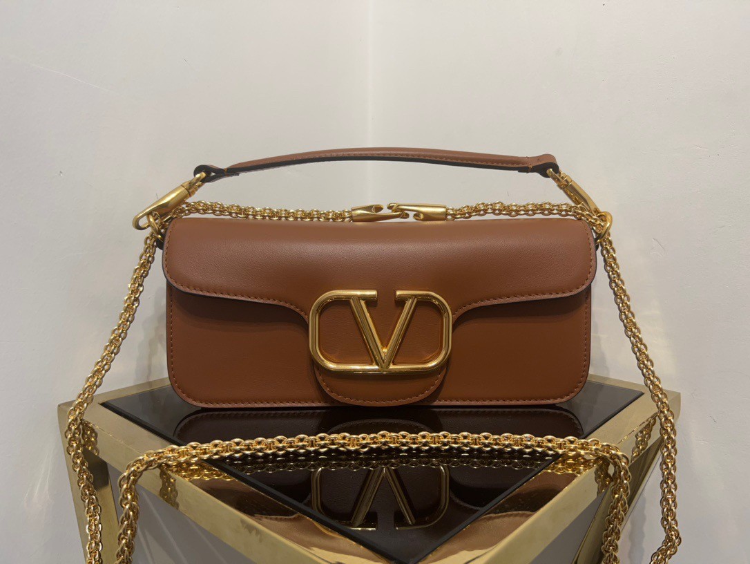 Valentino Loco Large Shoulder Bag In Brown Calfskin