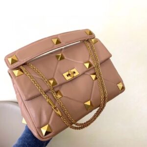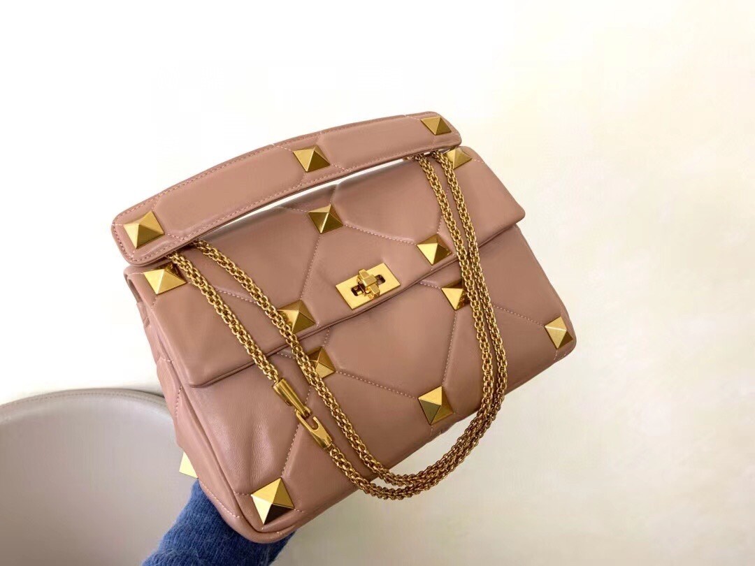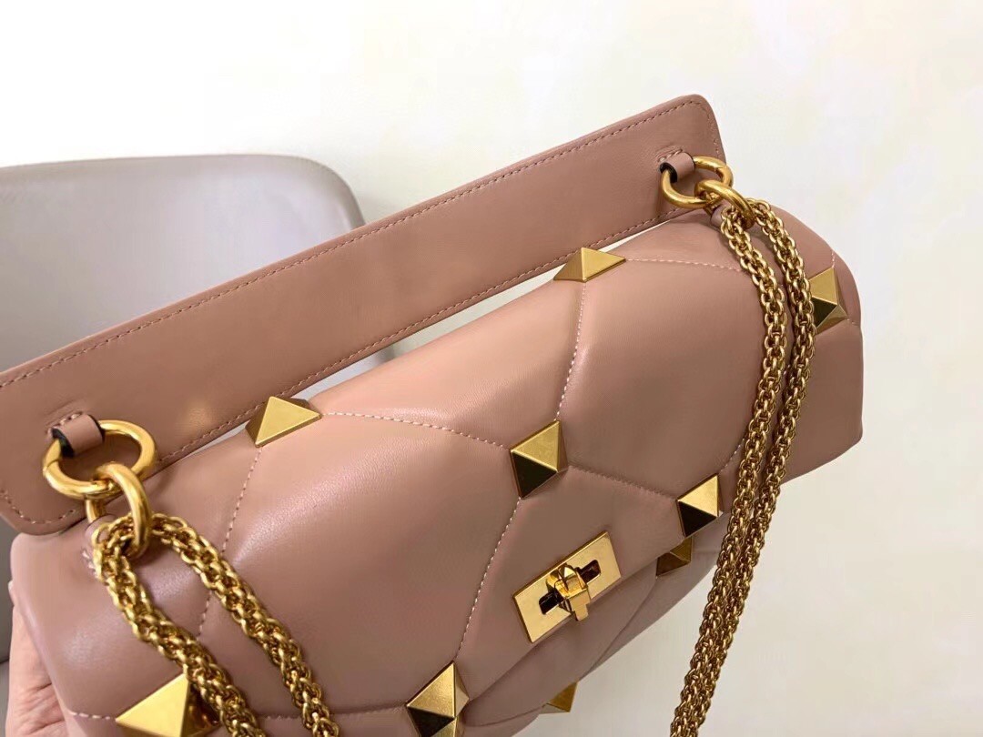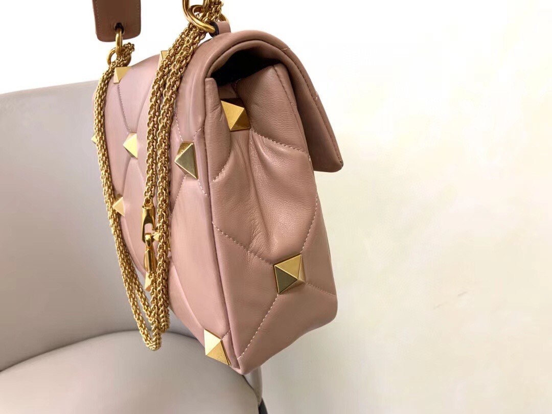 Valentino Roman Stud Chain Bag In Rose Cannelle Lambskin