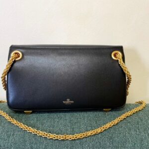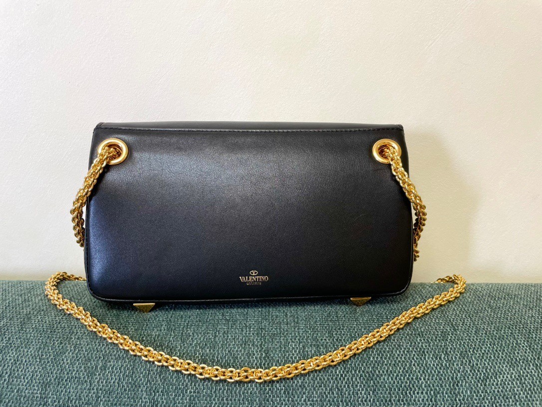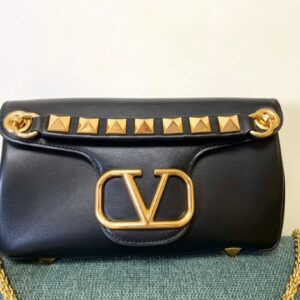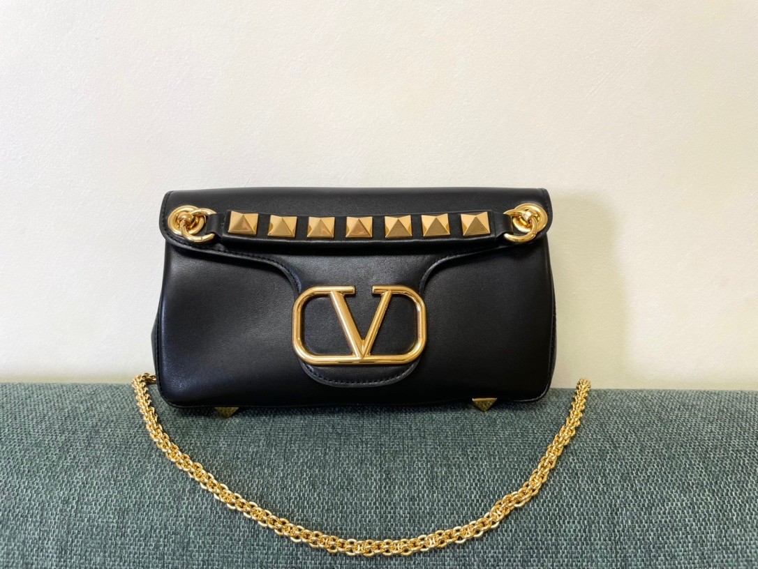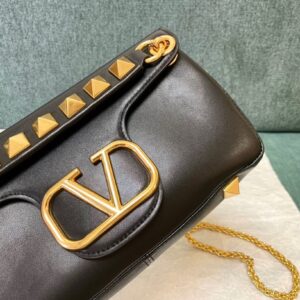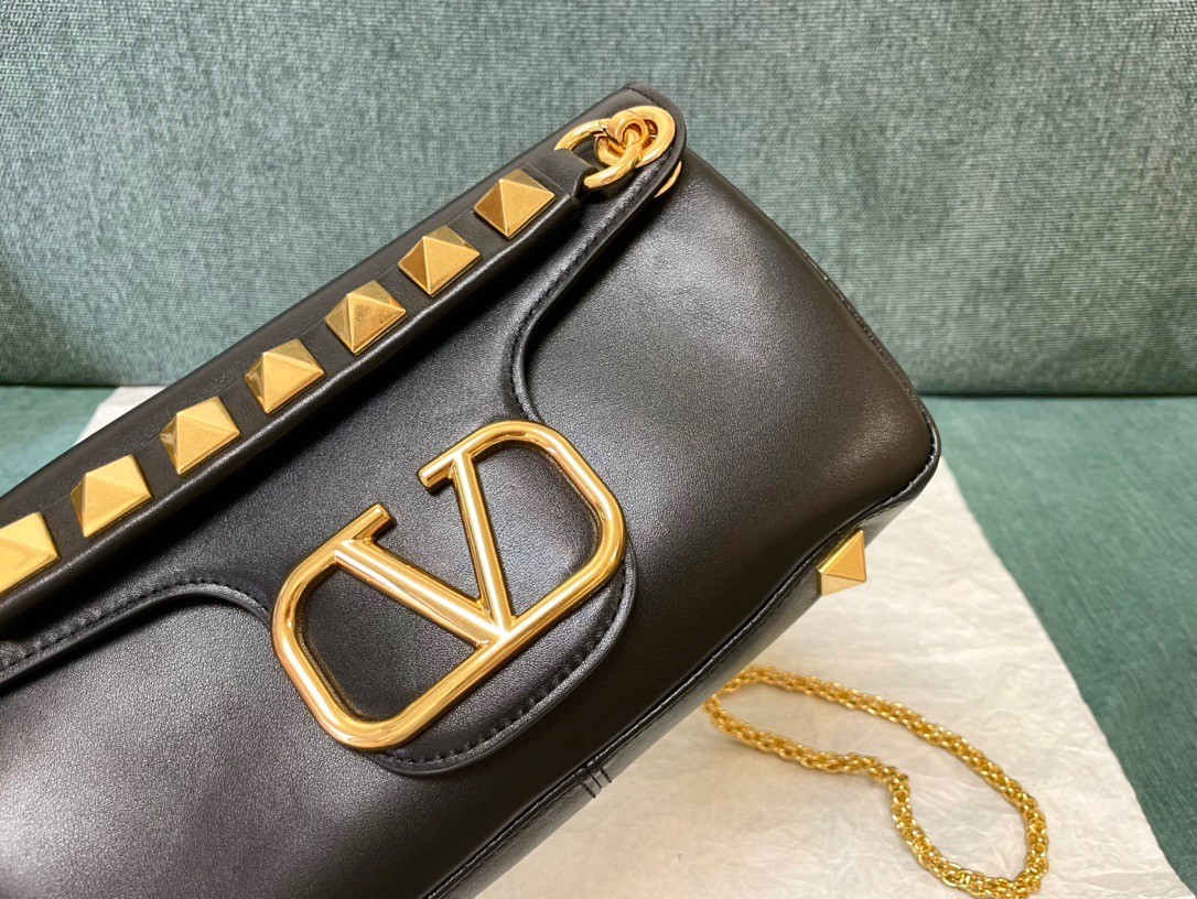 Valentino Stud Sign Shoulder Bag In Black Nappa Leather