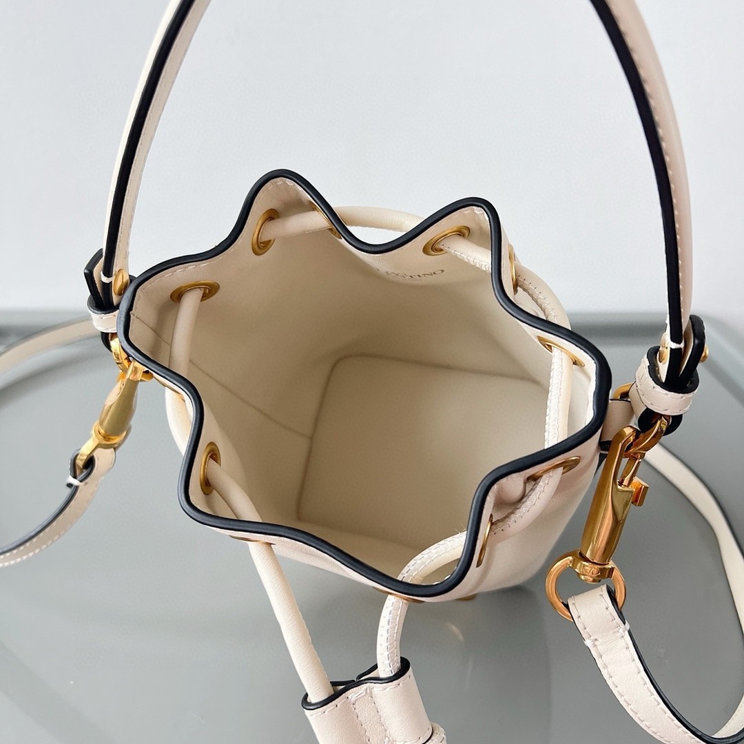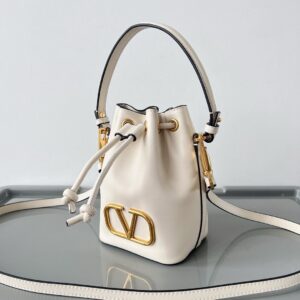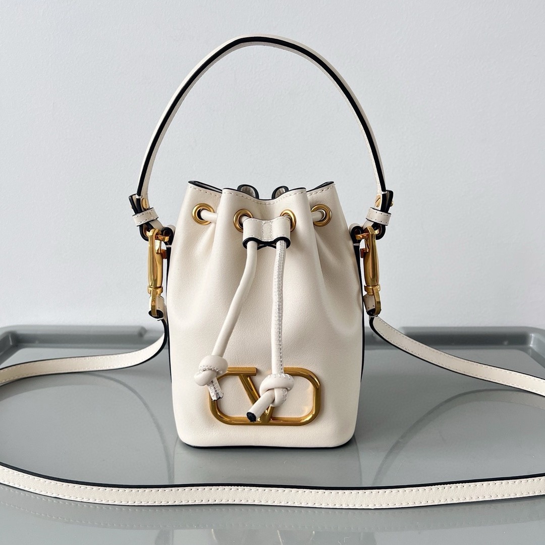 Valentino VLogo Signature Mini Bucket Bag in White Calfskin