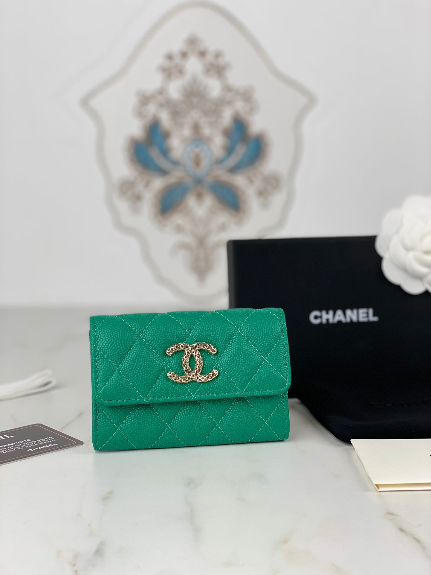 It comes with Dust box, Care manual, Tag and Paper bag.
